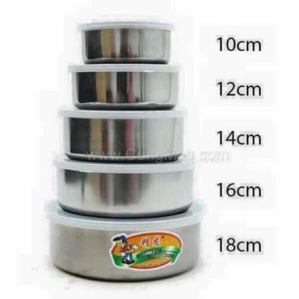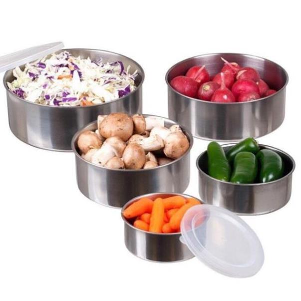 Bộ 5 Bát INOX Cao Cấp Có Nắp Đậy Tiện LợiBộ 5 bát inox cao cấp có nắp đậy với thiết kế thông minh vói bát được làm bằng chất liệu inox không rỉ đặc biệt an toàn đẹp sáng bóng.Sản phẩm bao gồm 5 thố với đường kính lần lượt là 10cm, 12cm, 14cm, 16cm và 18cm cho bạn thoải mái đựng các loại thực phẩm cần thiết để cất vào trong tủ lạnh và dễ dàng tìm kiếm khi cần dùng