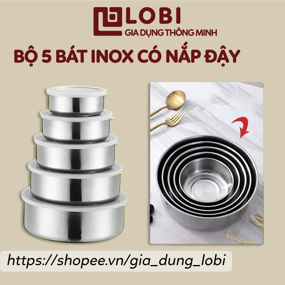 - Bộ 5 bát inox cao cấp có nắp đậy với thiết kế thông minh với bát được làm bằng chất liệu inox không rỉ