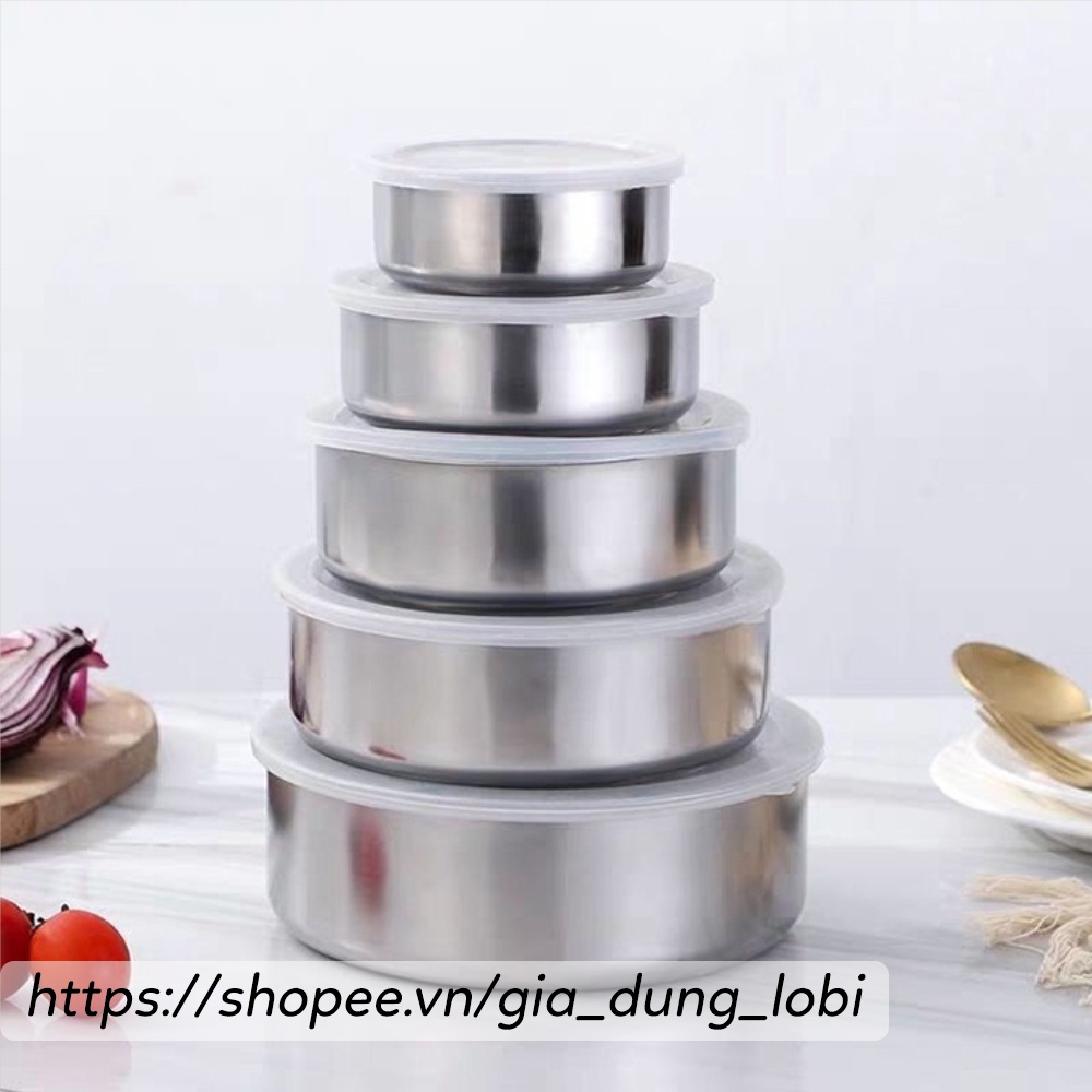 Nhà cửa & Đời sống > Bộ đồ bàn ăn > Lồng bàn || Bát inox có nắp đậy silicon, bộ thố inox không gỉ nhiều kích cỡ bền đẹp ( bộ 5 bát)Còn hàng