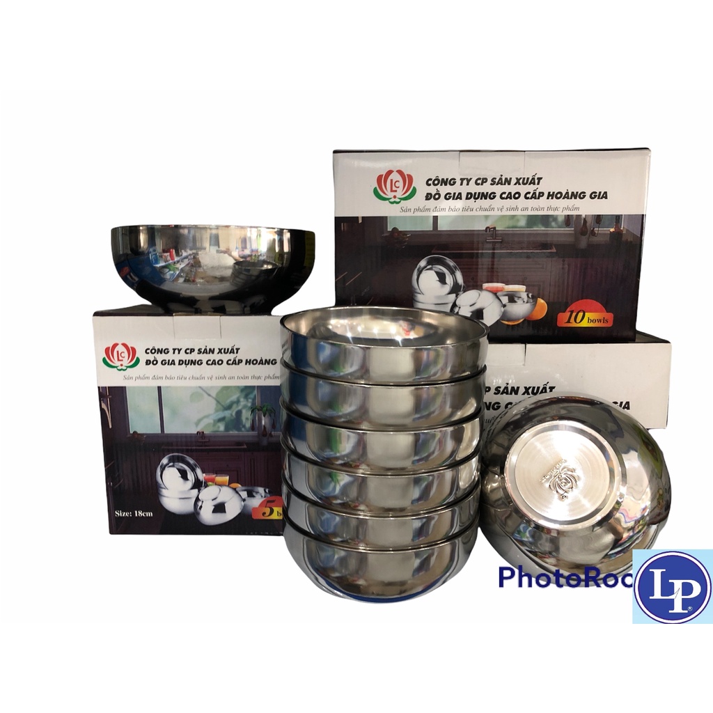 Bát Inox 2 Lớp Chơn Cách Nhiệt đủ kích cỡ Hoàng Gia- Màu sắc: trắng bạc