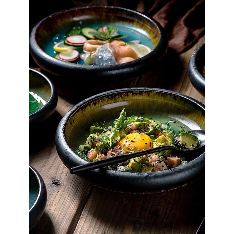 Nhà cửa & Đời sống > Bộ đồ bàn ăn > Tô || Bát kích thước lớn để canh, món ăn chính, men bóng xanh thiết kế đóa hoa lạ mắt, chất liệu sứ, tô lớnCòn hàng