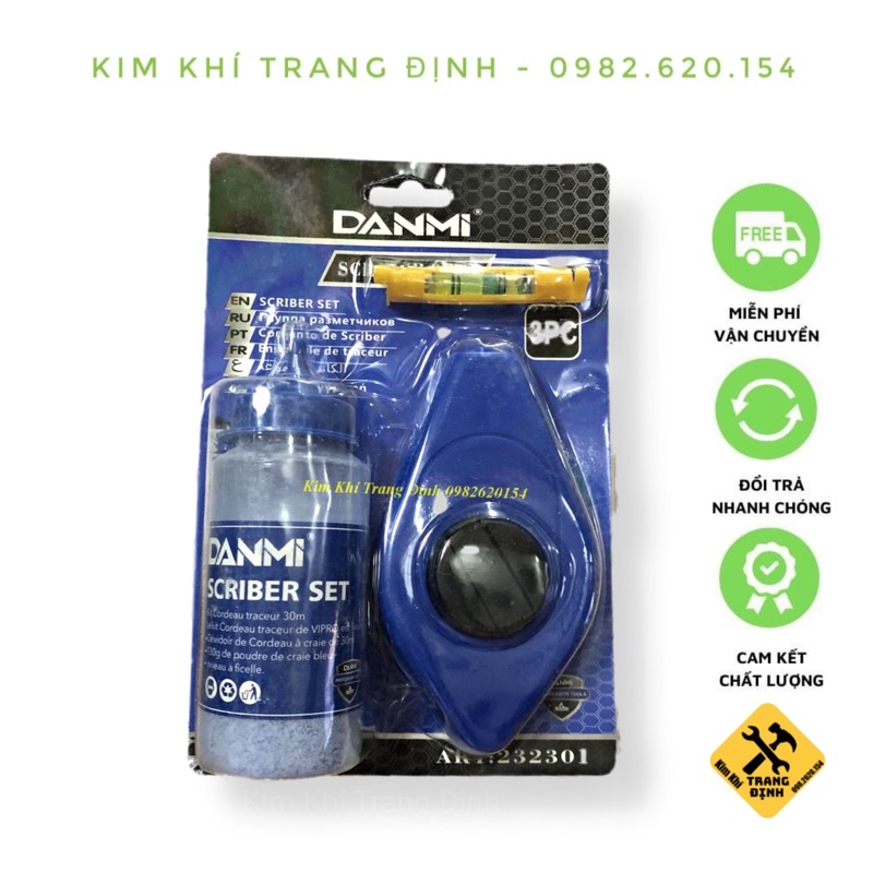 Giới thiệu Bật Mực (Búng Mực) Dùng Trong Thi Công Xây Dựng Gồm 3 Món - Dây Chỉ 15M DANMI
