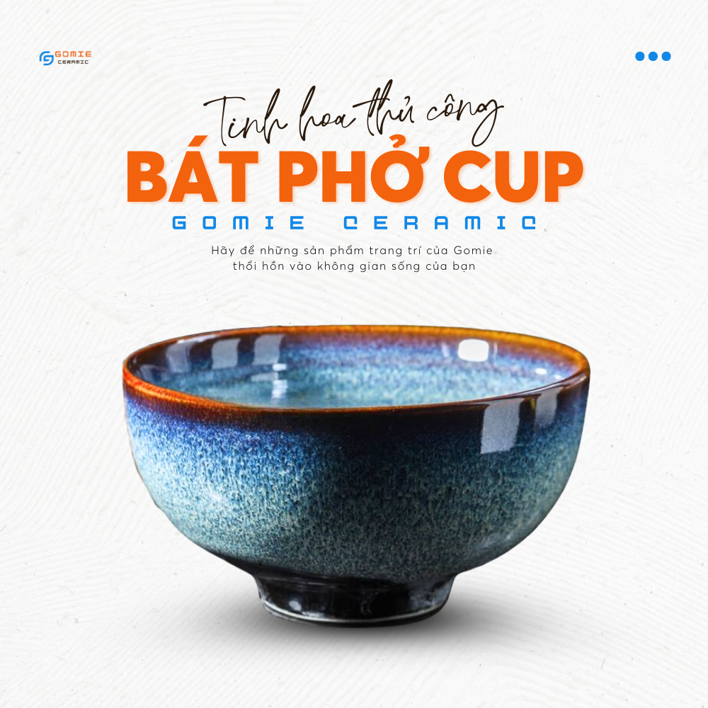 Bát Phở Cup Men Xanh Hoả Biến 17x9.5cm - Bát Phở Gốm Sứ Cao Cấp - Bát Phở Gốm Sứ Bát Tràng Hàng Cao Cấp