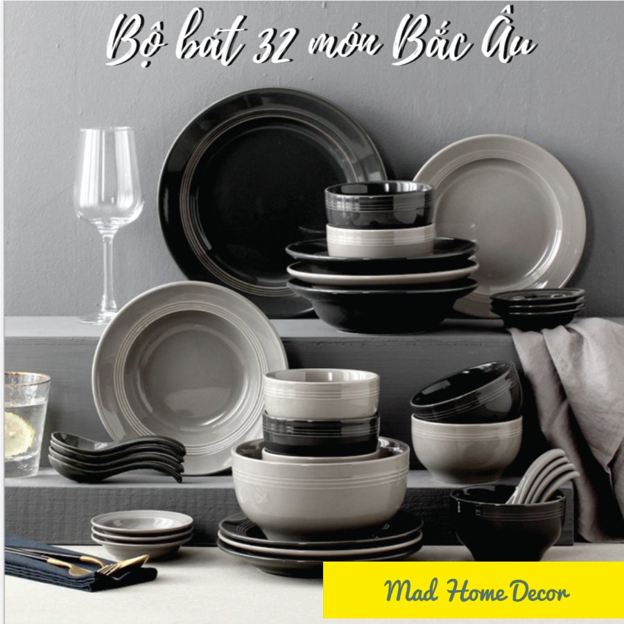 Nhà cửa & Đời sống > Bộ đồ bàn ăn > Tô || Bộ bát phong cách Bắc Âu 34 món dành mix 2 màu đen, xámCòn hàng