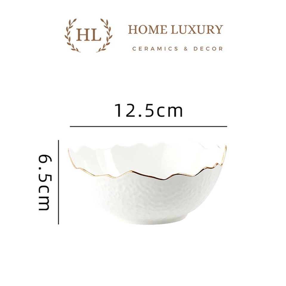 Bát Salad sứ trắng miệng lượn viền vàng, Bát sứ Decor phong cách Nhật Bản Hoa Anh Đào