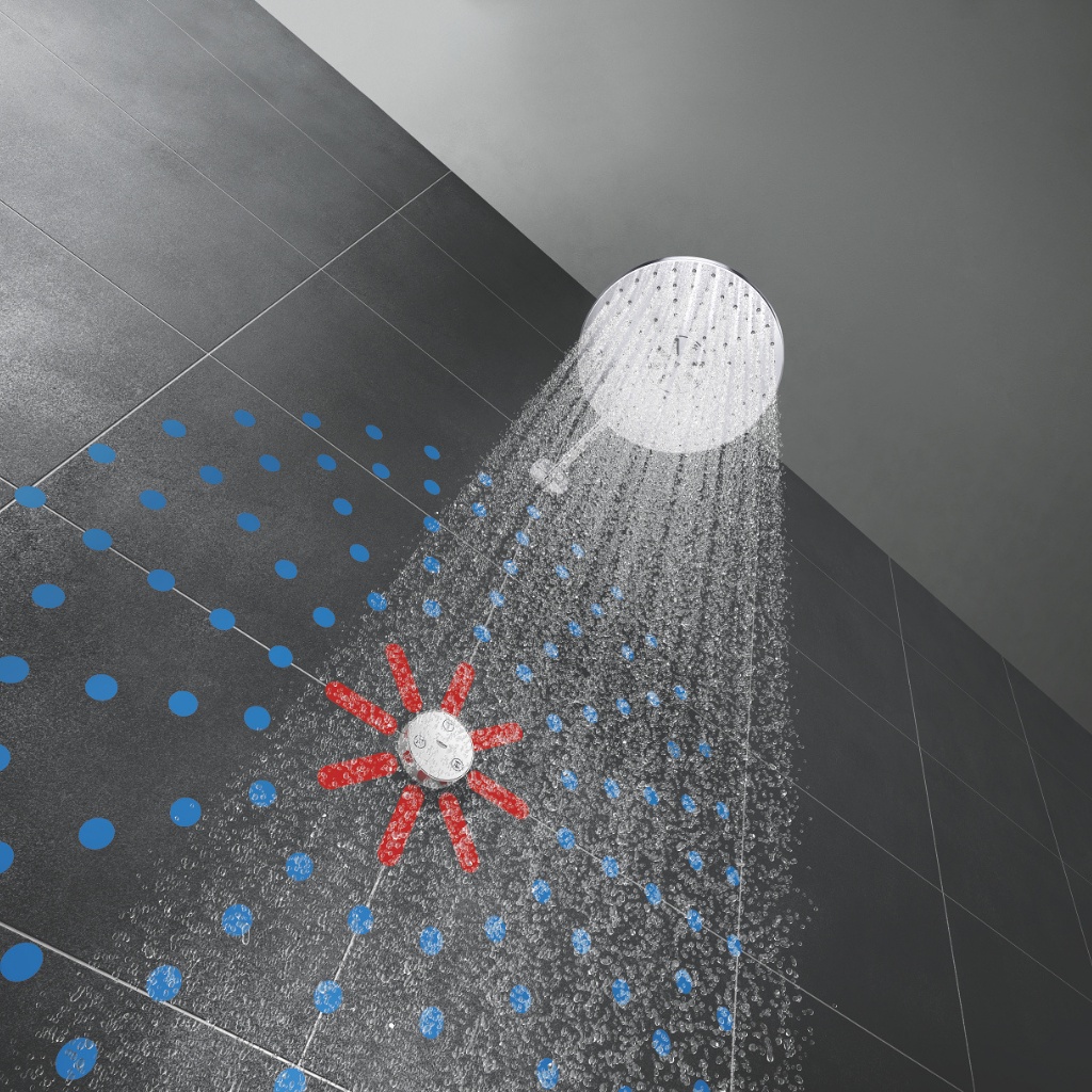 Bát sen có hai kiểu phun khác nhau - chế độ phun GROHE PureRain nhẹ nhàng, thư giãn và kiểu phun GROHE ActiveRain mạnh mẽ, đủ mạnh để xả sạch dầu gội và đủ chính xác để Massage đầu, cổ và lưng đầy thú vị. Các kiểu phun này có thể được sử dụng riêng biệt hoặc kết hợp. Nhờ chế độ điều khiển từ xa sáng tạo của bát sen, bạn có thể chuyển đổi giữa các chế độ phun mà không cần phải chạm bát sen hay bộ trộn, tăng sự thoải mái khi trải nghiệm. Điều khiển từ xa có tuổi thọ pin lên đến bốn năm và có thể được đặt ở bất kỳ vị trí nào mà bạn mong muốn. Bát sen này là sản phẩm lý tưởng để thay thế bát sen trong phòng tắm hiện tại của bạn và cung cấp một giải pháp tinh gọn, kiểu dáng đẹp.