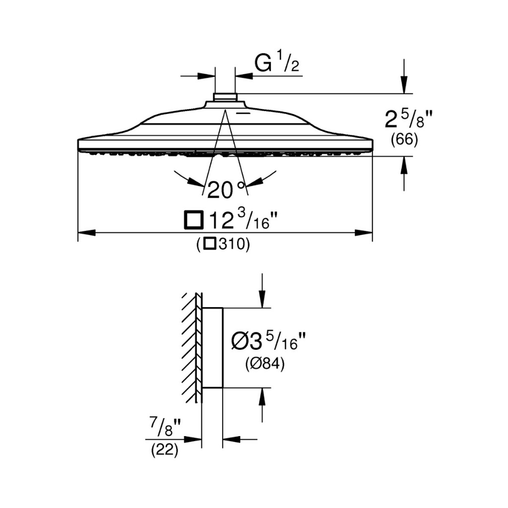 - Tên sản phẩm: Bát Sen 2 Chế Độ GROHE RAINSHOWER SMARTCONNECT 310 Cube - 26643000