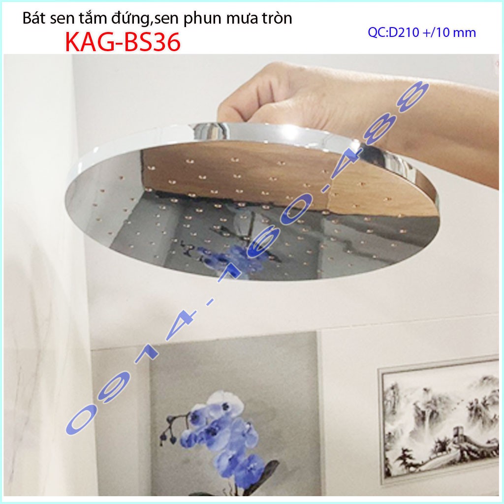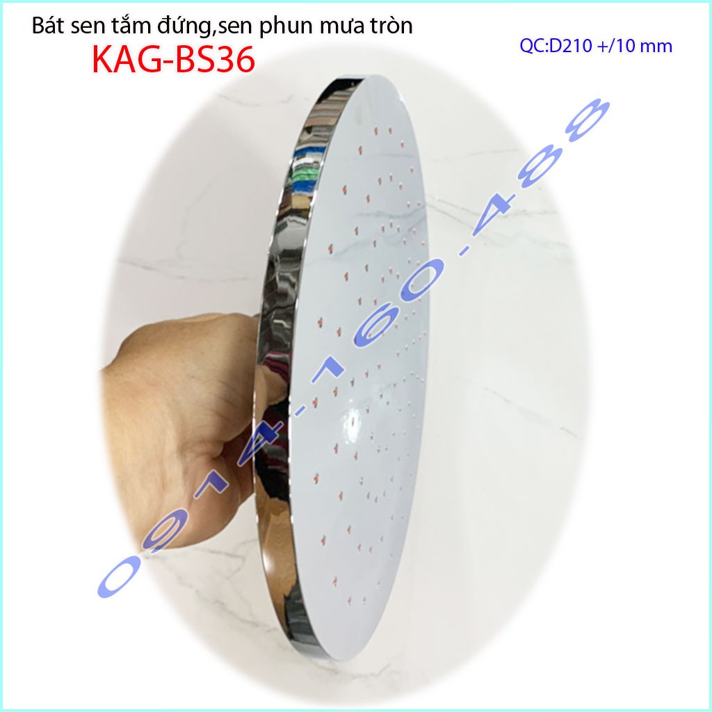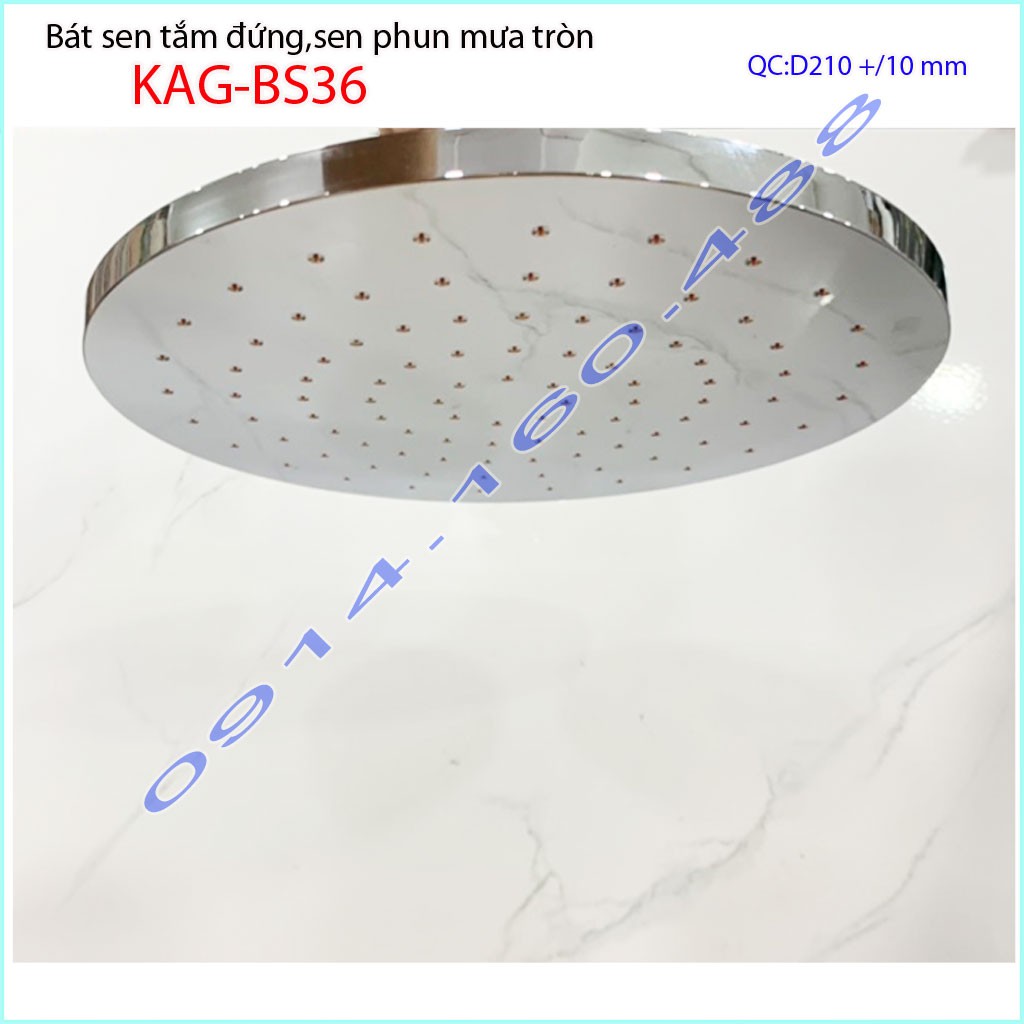 Bát sen tắm đứng KAG-BS36, Bát sen tắm phun mưa tròn D22cm, Đầu sen phun mưa tia nước nhiều phun nước tốtKích thước bát sen tròn 210mmx210mm -đường kính 21cm