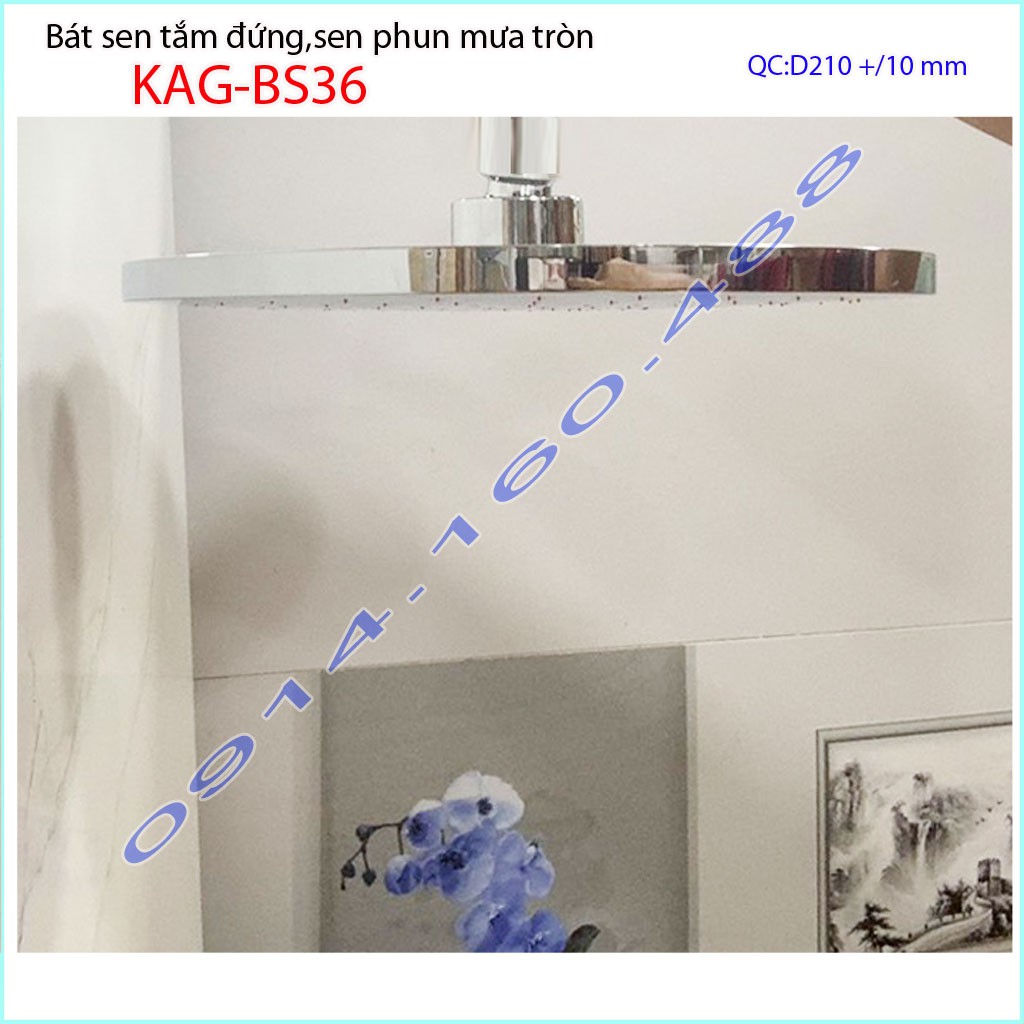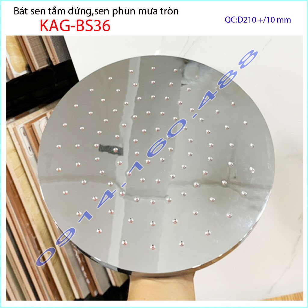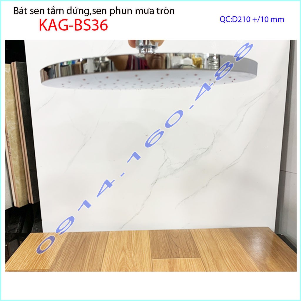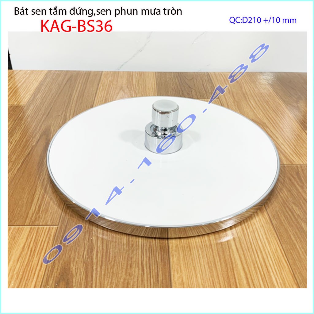 Bát sen tắm đứng KAG-BS36, Bát sen tắm phun mưa tròn D22cm, Đầu sen phun mưa tia nước nhiều phun nước tốtKích thước bát sen tròn 210mmx210mm -đường kính 21cm