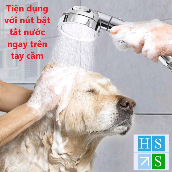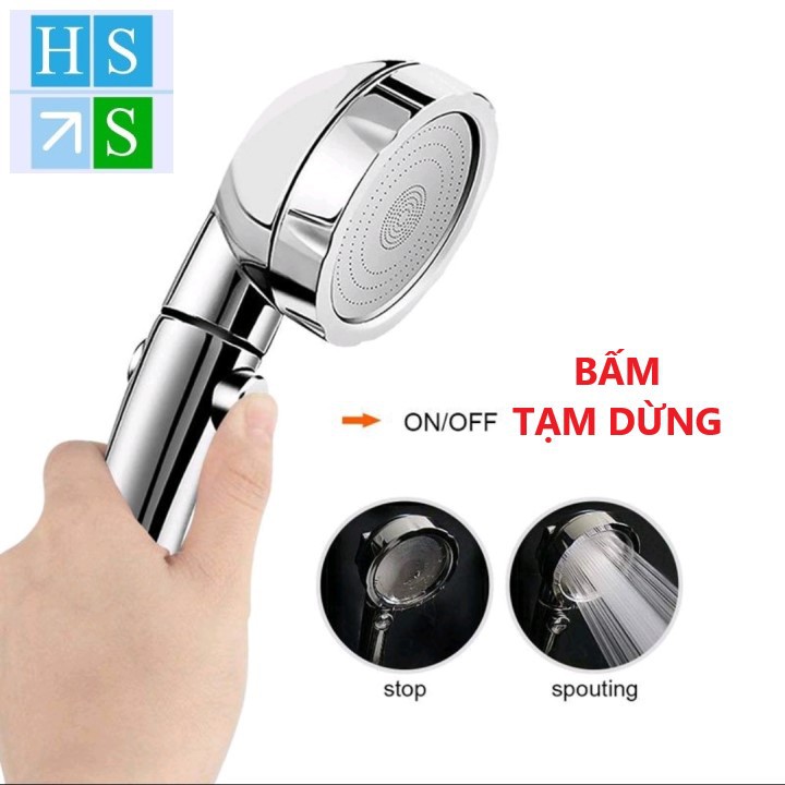 Bát sen tắm nóng lạnh cao cấp mạ CROM đầu vòi tắm tăng áp mặt Inox kèm nút tắt mở với 03 chế độ nước - HS Shop Đà Nẵng