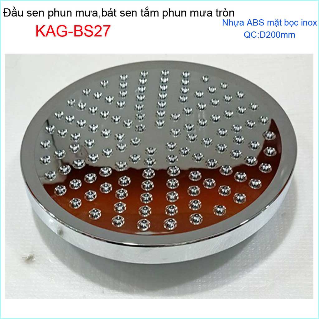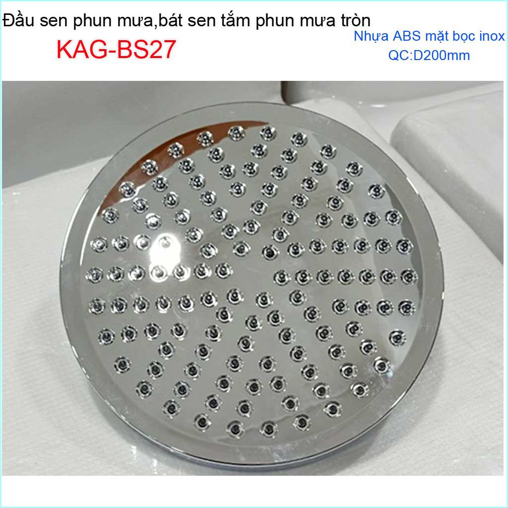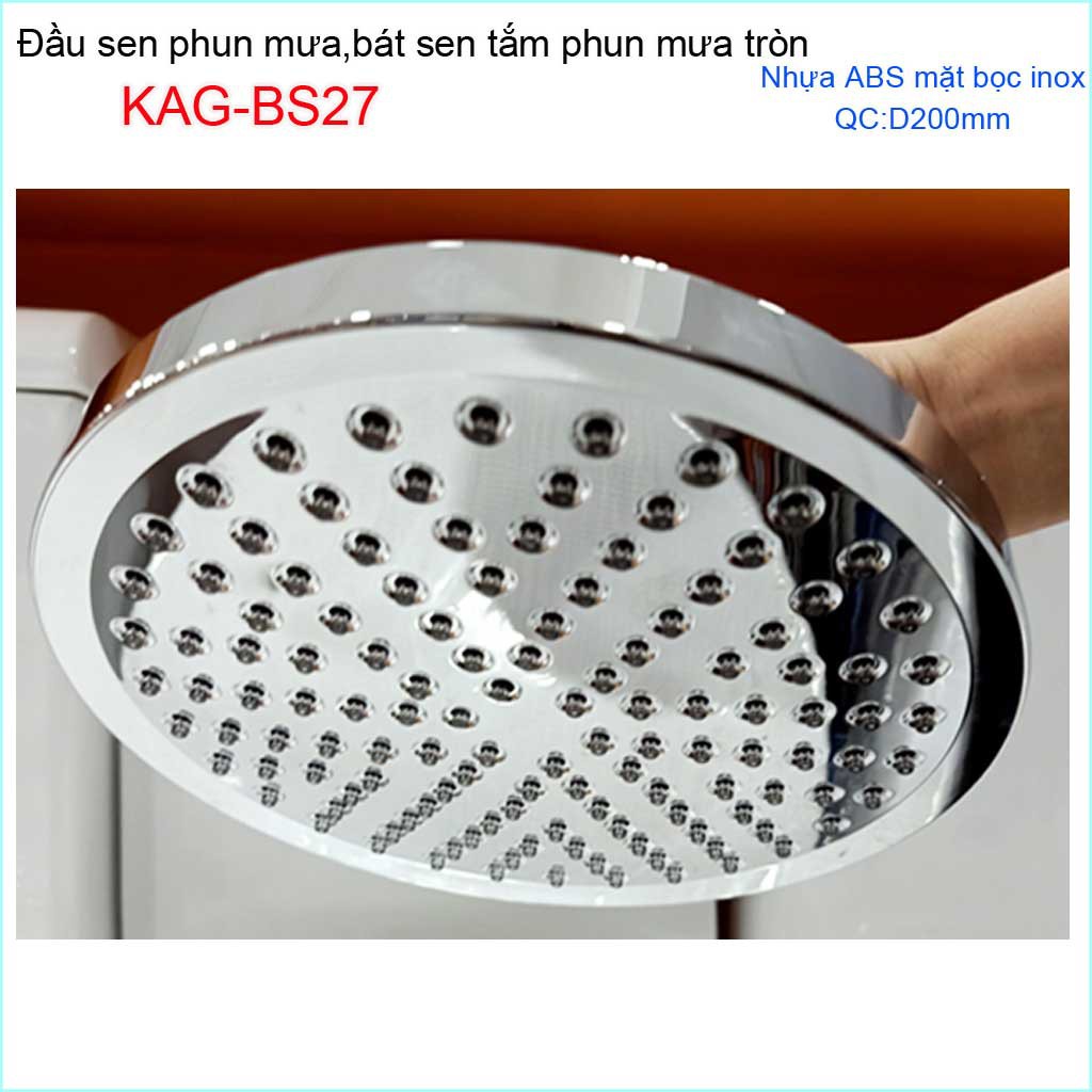 Bát sen tắm phun mưa, Đầu sen phun mưa, bát sen tắm đứng KAG-BS27Bát sen tắm phun mưa, Đầu sen phun mưa, bát sen tắm đứng KAG-BS27 được sản xuất bởi nhựa ABS mạ chrome sáng bóng, mặt trên bằng inox 304 mờ, tạo áp lực phun mưa mạnh hơn