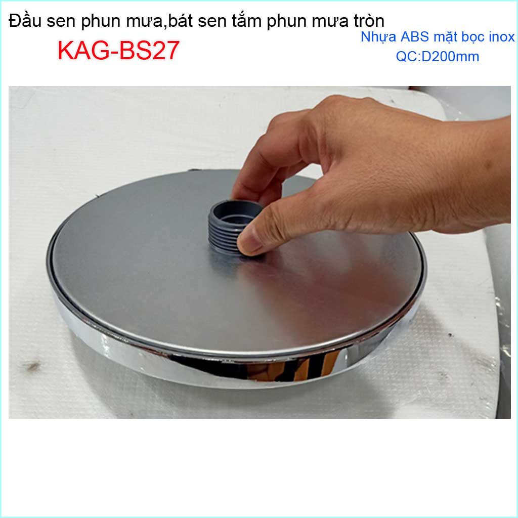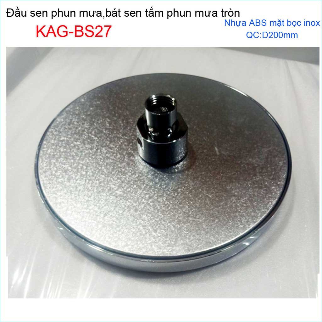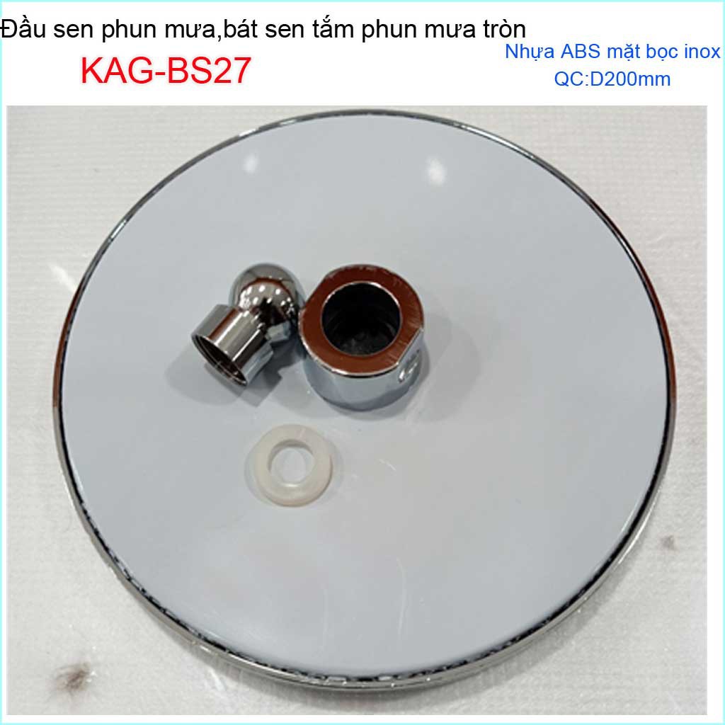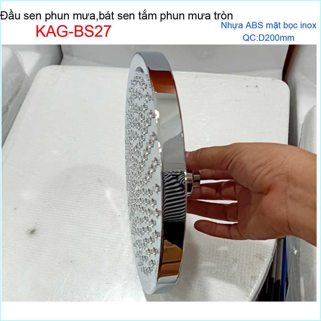 Bát sen tắm phun mưa, Đầu sen phun mưa, bát sen tắm đứng KAG-BS27Bát sen tắm phun mưa, Đầu sen phun mưa, bát sen tắm đứng KAG-BS27 được sản xuất bởi nhựa ABS mạ chrome sáng bóng, mặt trên bằng inox 304 mờ, tạo áp lực phun mưa mạnh hơn