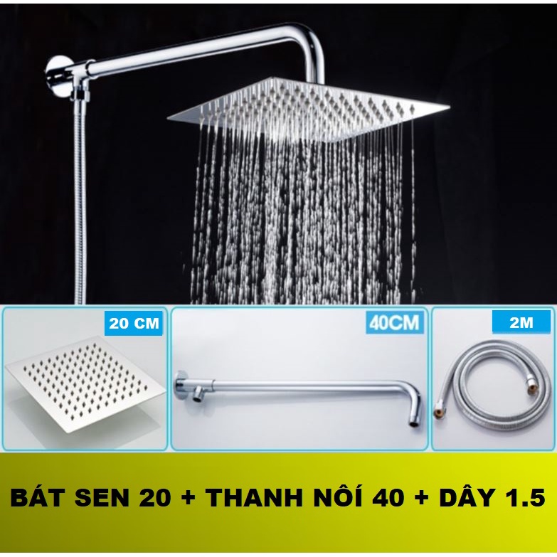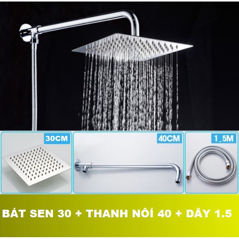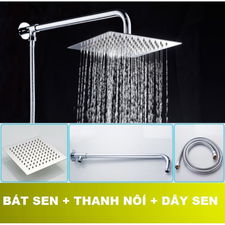 Đủ bộ bát sen VUÔNG tắm đứng kèm dây nối bằng Inox sáng bóng tiện lợiChi tiết sản phẩm gồm: