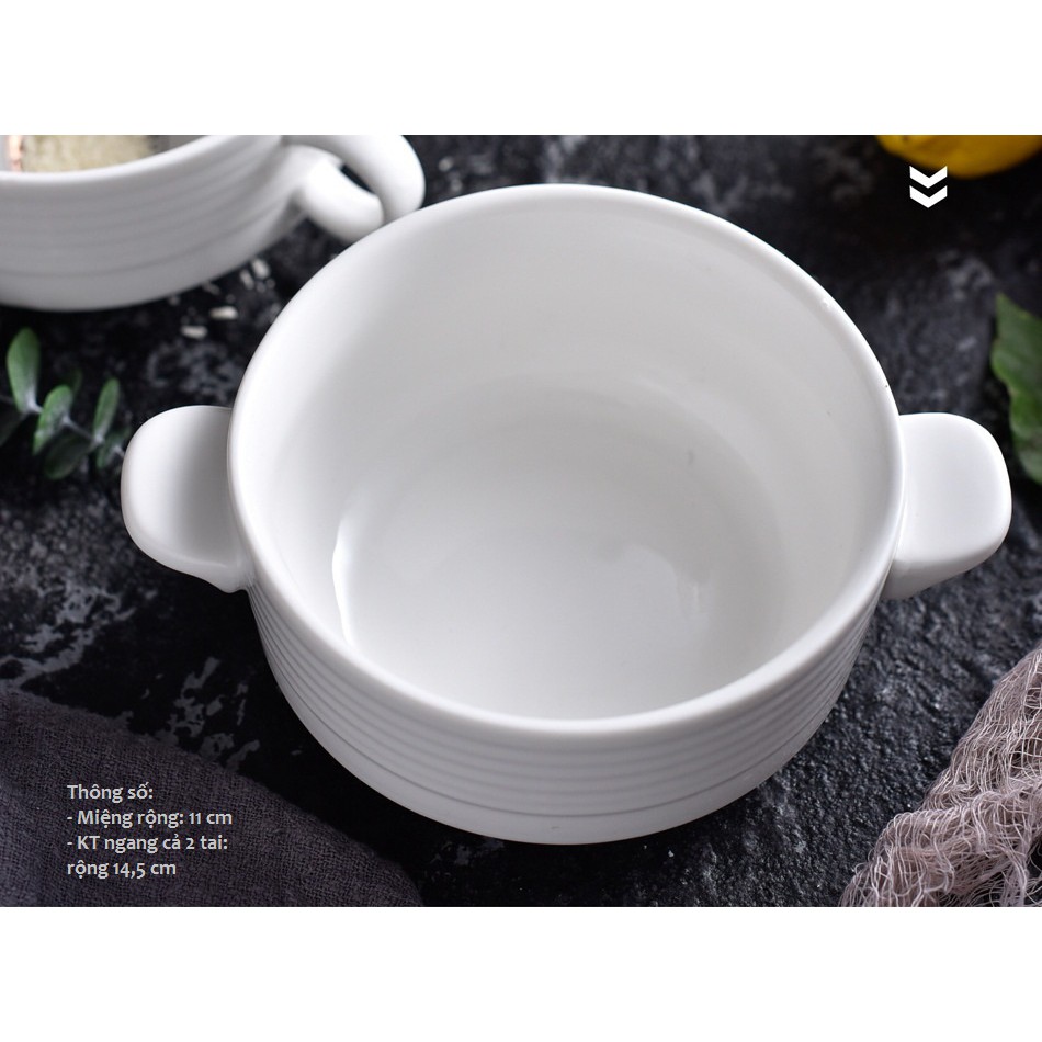 Nhà cửa & Đời sống > Bộ đồ bàn ăn > Tô || Bát sứ 2 quai trắng cao cấp họa tiết sọc vằn phong cách ItalyCòn hàng