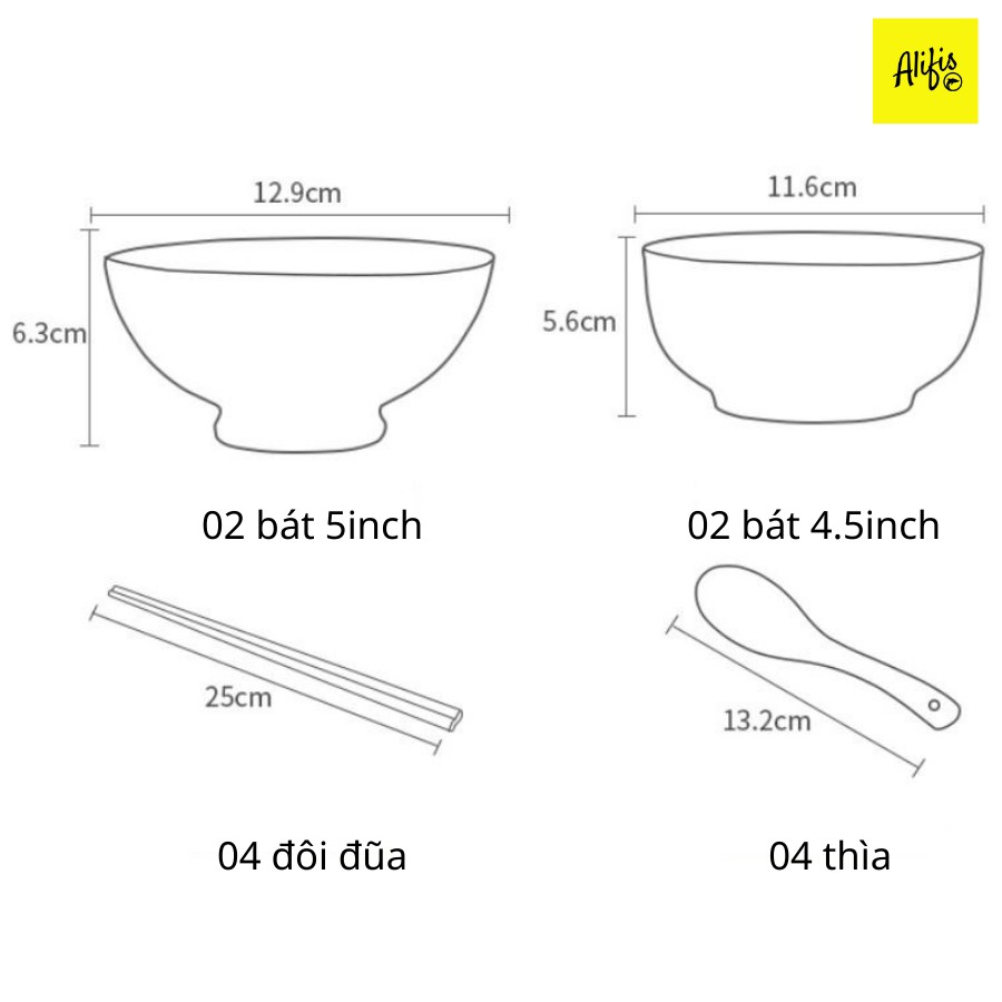 - 02 bát 5inch (Kích thước: cao 6.3cm, đường kính 12.9cm)