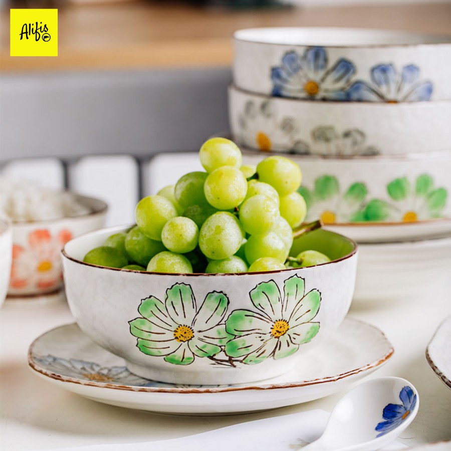 Bộ bát sứ ăn cơm 12 món – phù hợp với gia đình 4 người – họa tiết hoa cúc phong cách Nhật