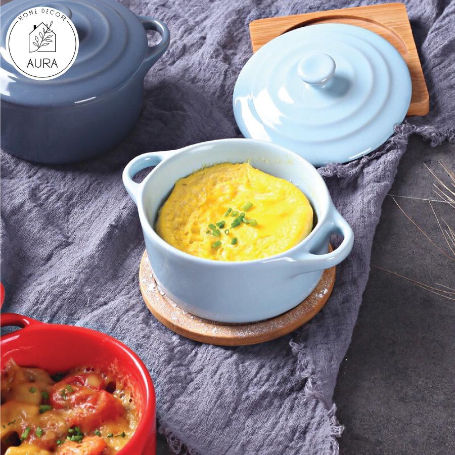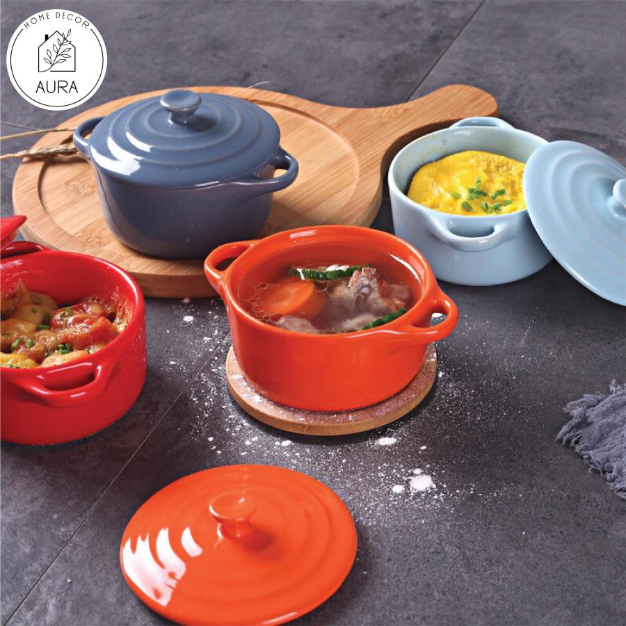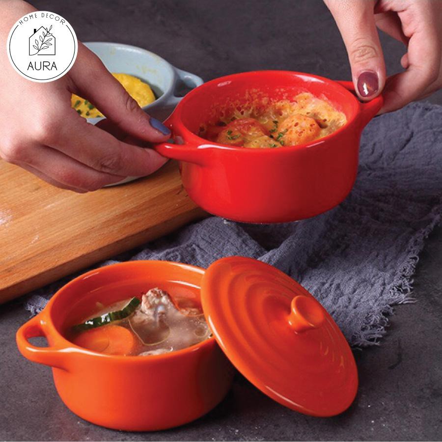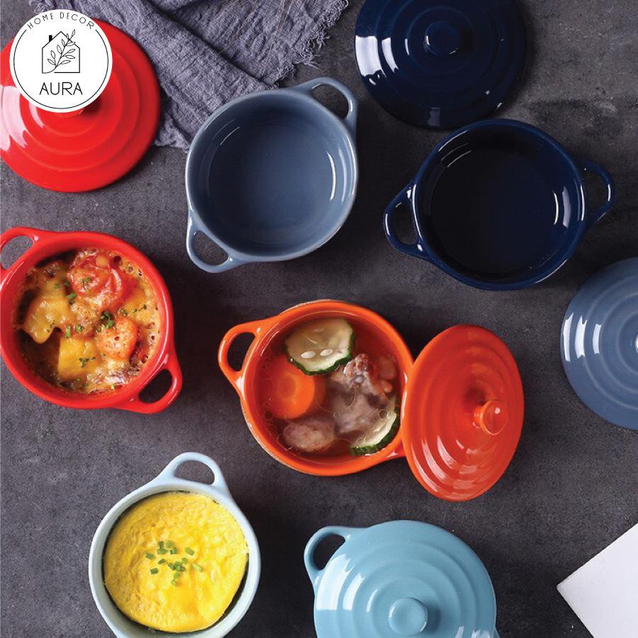 Nhà cửa & Đời sống > Bộ đồ bàn ăn > Tô || Bát sứ ăn dặm bát sứ ramekin có quai kèm nắp đậyCòn hàng