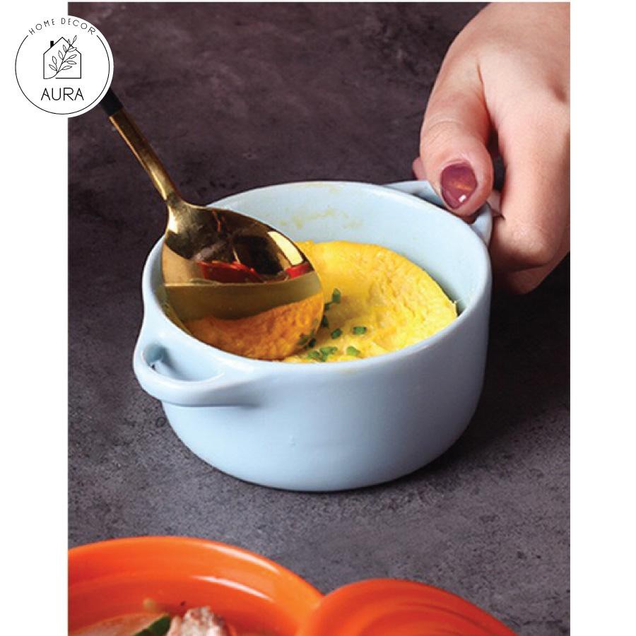 Bát sứ ăn dặm bát sứ ramekin có quai kèm nắp đậy