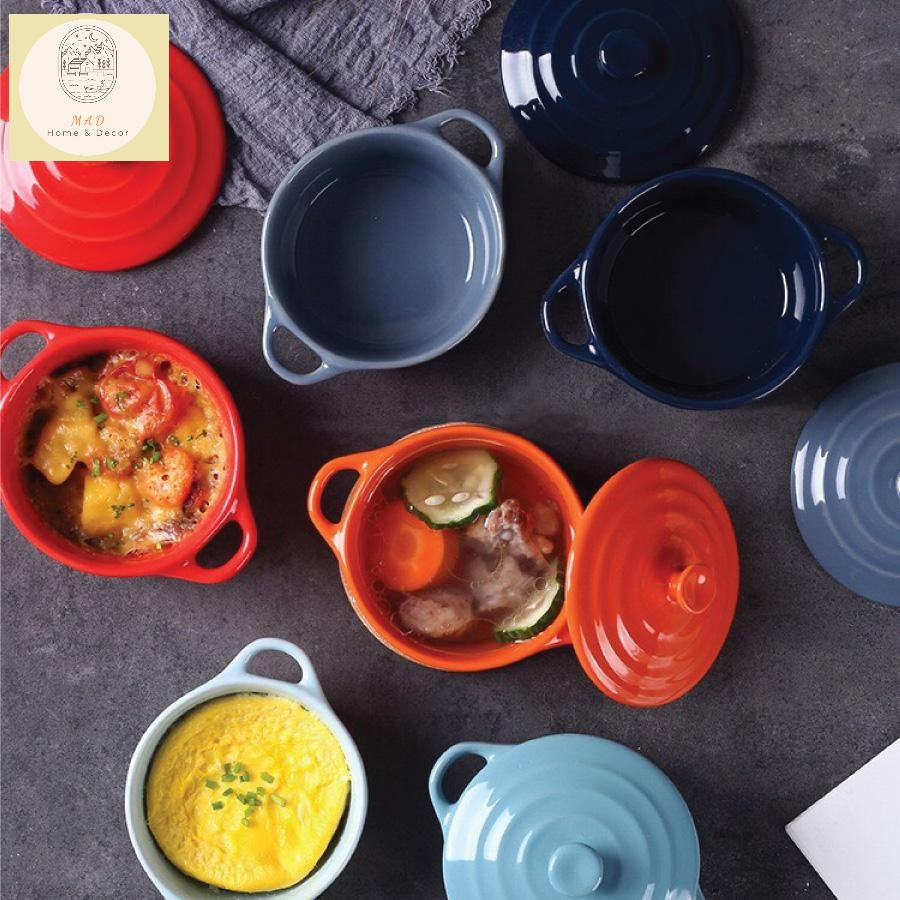👉Bát sứ ăn dặm bát sứ ramekin có quai kèm nắp đậyvới 6 màu sắc khác nhau.Thông tin chi tiết: