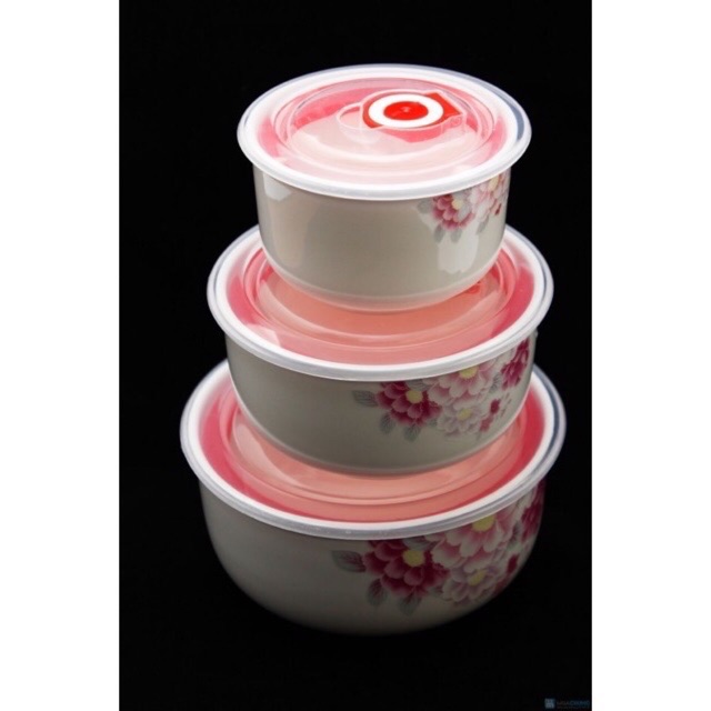 Bộ Ba bát sứ có nắp hút chân không , để được trong lò vi sóng , với ba kích thước khác nhau để dễ dàng lựa chọn trữ thức ăn cho phù hợp