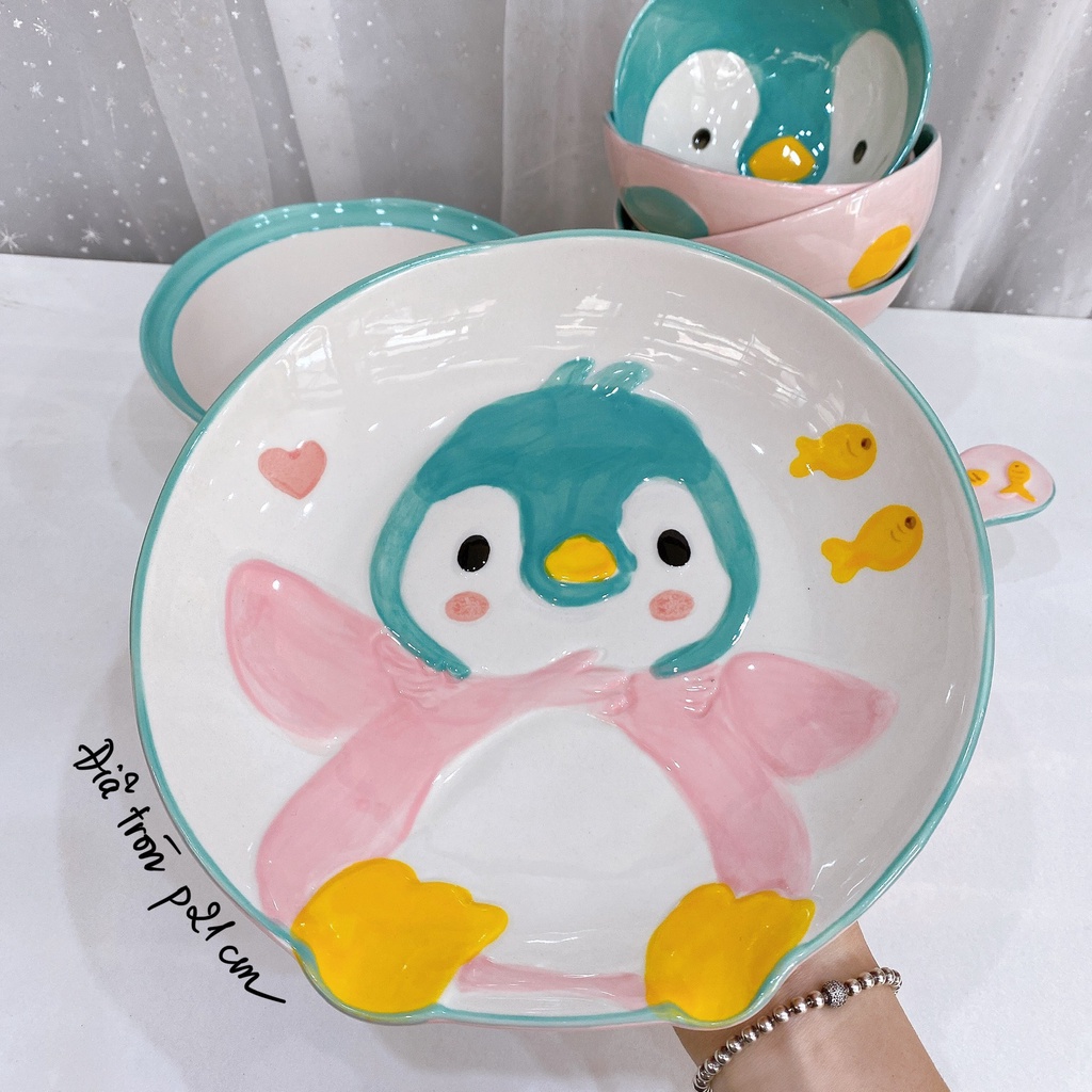 Nhà cửa & Đời sống > Bộ đồ bàn ăn > Tô || Bát Sứ Bát Ăn Cơm Bộ Bát Đĩa Decor Bộ Chén Dĩa Sứ vẽ tay họa tiết nổi sét cánh cụt hồng 7 món cho bé cực đẹpCòn hàng