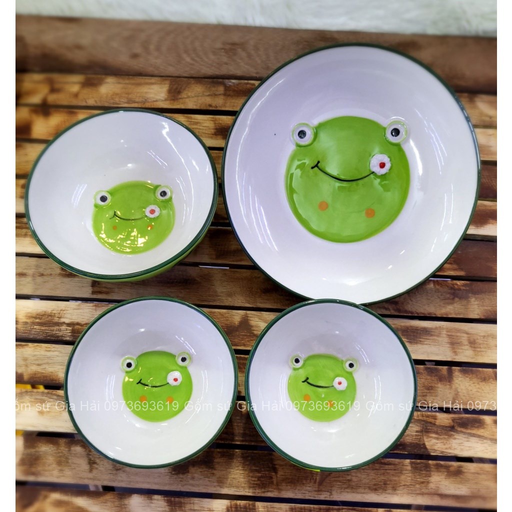Nhà cửa & Đời sống > Bộ đồ bàn ăn > Tô || Bát Sứ Bát Ăn Cơm Bộ Bát Đĩa Decor sét ếch xanh 4 món siêu cuteCòn hàng