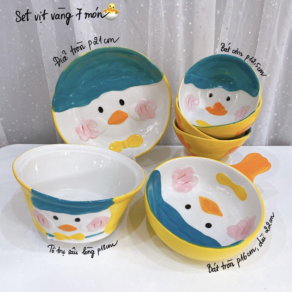 Nhà cửa & Đời sống > Bộ đồ bàn ăn > Tô || Bát Sứ Bát Ăn Cơm Bộ Bát Đĩa Decor Bộ Chén Dĩa Sứ vẽ tay họa tiết nổi hình vịt vàng 7 món cực đẹpCòn hàng