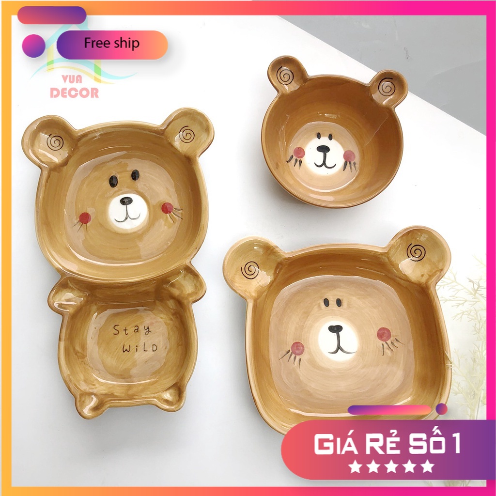 Bát Sứ Bát Ăn Cơm Bộ Bát Đĩa Decor Bộ Chén Dĩa Sứ Gấu Nâu Dễ Thương Cute Cao Cấp S49