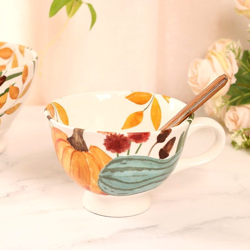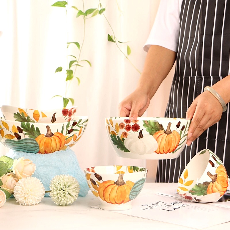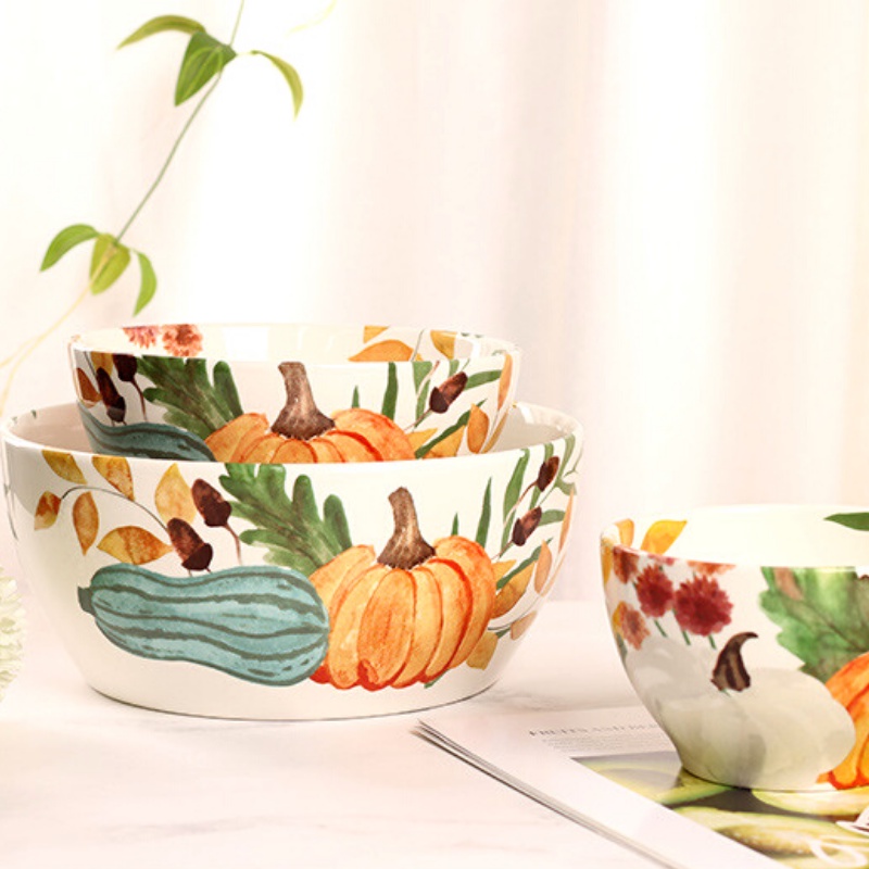 Giới thiệu Bát sứ - Bát bầu dục họa tiết bí ngô - trang trí quả bí ngô - bộ đồ bàn ăn cao cấp phong cách Âu Mỹ xinh xắn