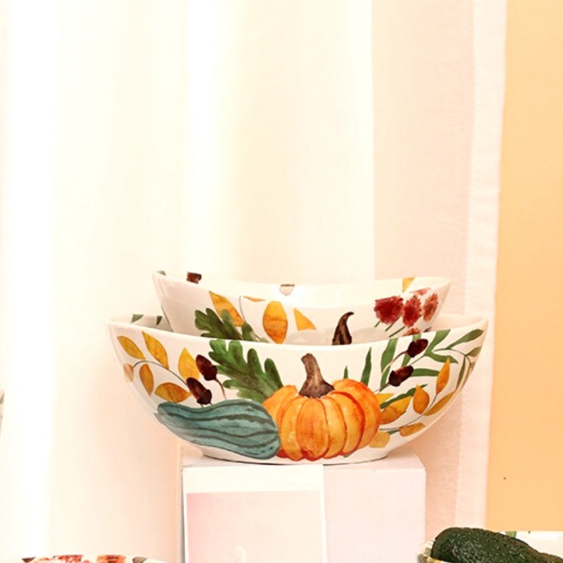 Nhà cửa & Đời sống > Bộ đồ bàn ăn > Tô || Bát sứ - Bát bầu dục họa tiết bí ngô - trang trí quả bí ngô - bộ đồ bàn ăn cao cấp phong cách Âu Mỹ xinh xắnCòn hàng