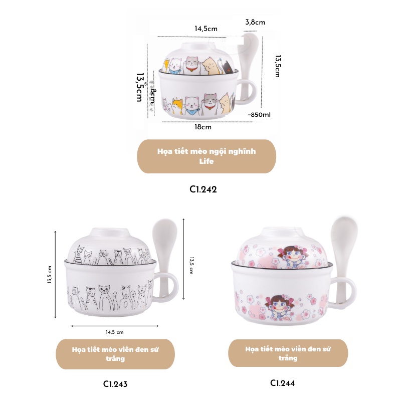 Bát sứ - Bát tô ăn mì kèm nắp lớn - có 1 bên tai cầm gài thìa sứ trắng tiện lợi - Tô ăn dặm cho béTHÔNG TIN SẢN PHẨM: