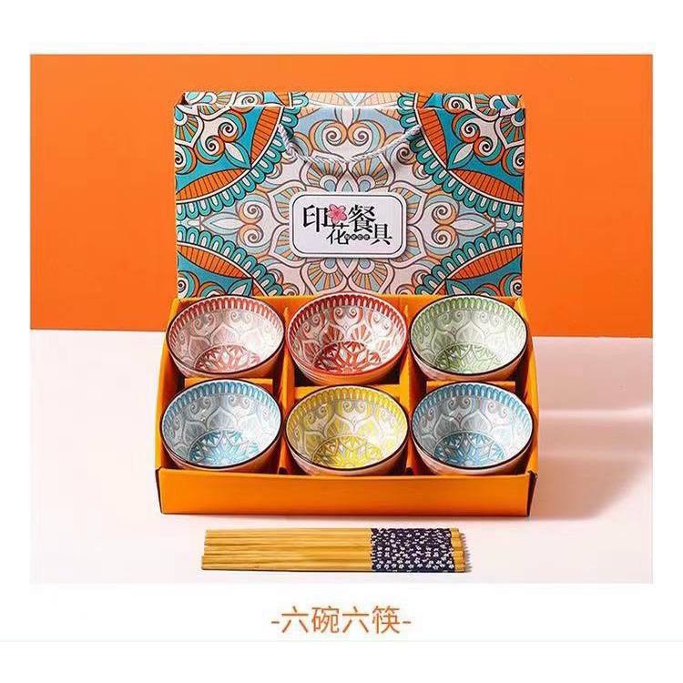 Bộ Bát Sứ Cao Cấp, Bát Ăn Cơm Thổ Cẩm Kèm Đũa Cao Cấp, Đồ Gia Đình, Hộp Quà Tặng Sang Trọng