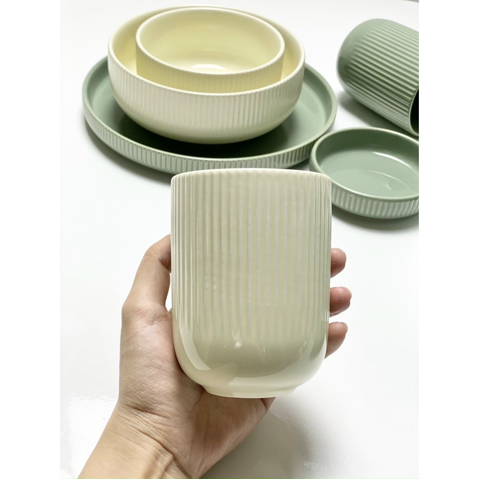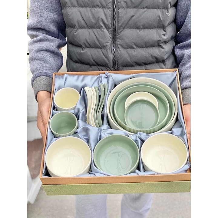 - Bộ bát gồm 2 màu: Xanh và Kem