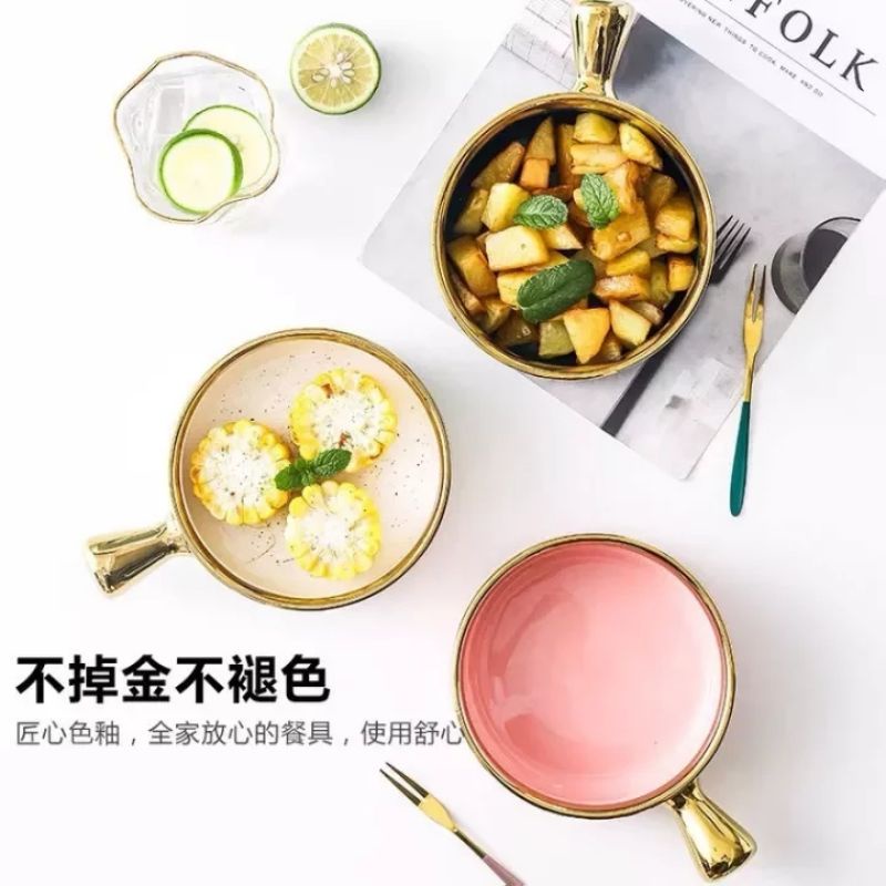 HÀNG CAO CẤP VIỀN VÀNG SANG CHẢNH***Bát sứ có tay cầm, tô pastel - chảo nướng decor phong cách Hàn Quốc