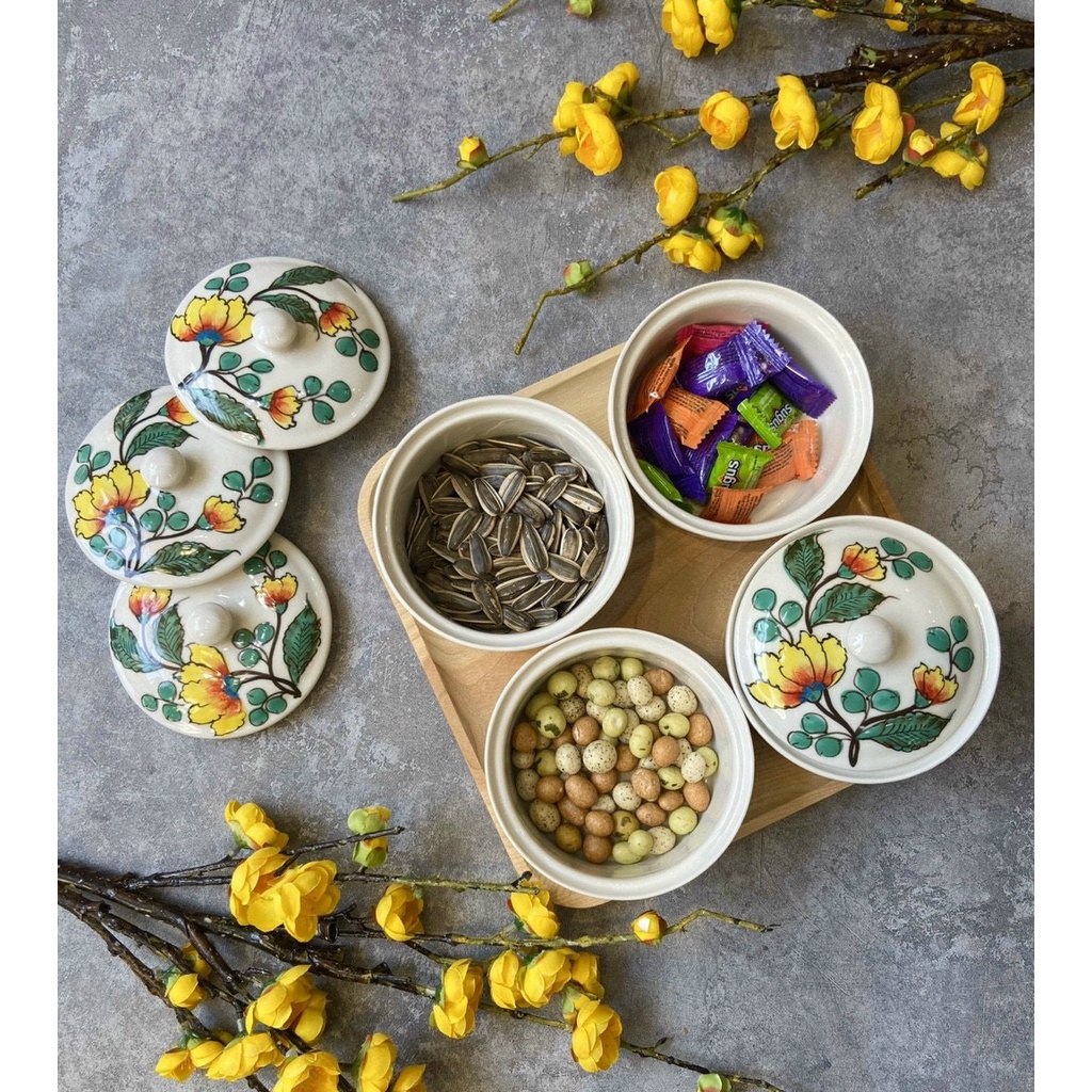 ngoài ra nhiều hũ có thể làm khay mứt tết tiện lợi. Shop có bán kèm khay gỗ .