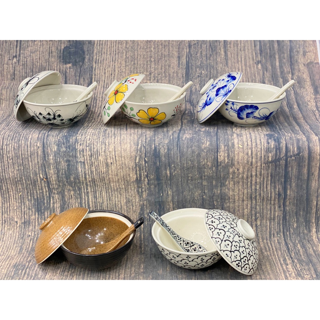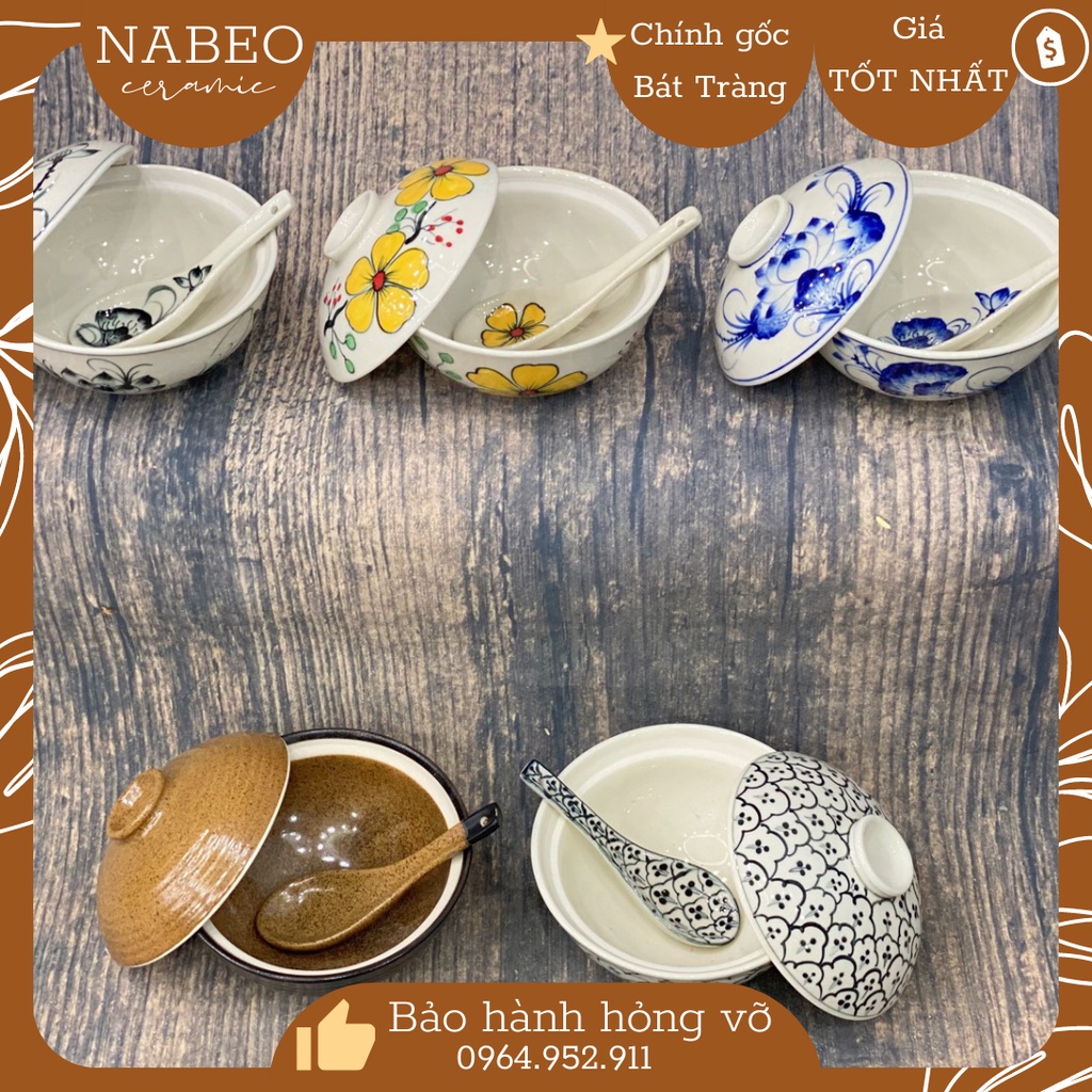 Bát Sứ Chưng Yến- Sâm- Caramen- Chè - Đựng Mứt Tết, Bánh Kẹo- Thố Có Nắp - Dung tích 400ml- Gốm Sứ Bát Tràng