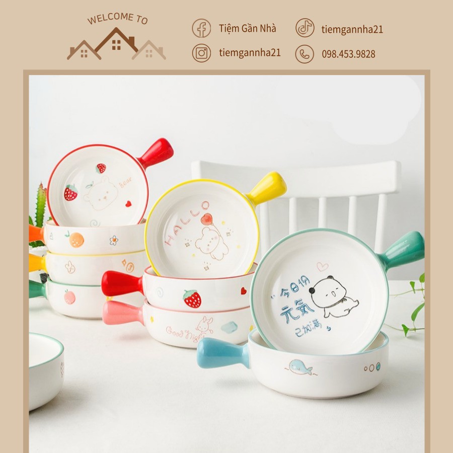 Nhà cửa & Đời sống > Bộ đồ bàn ăn > Tô || Bát sứ có tay cầm, thố nướng tròn họa tiết phong cách Hàn QuốcCòn hàng