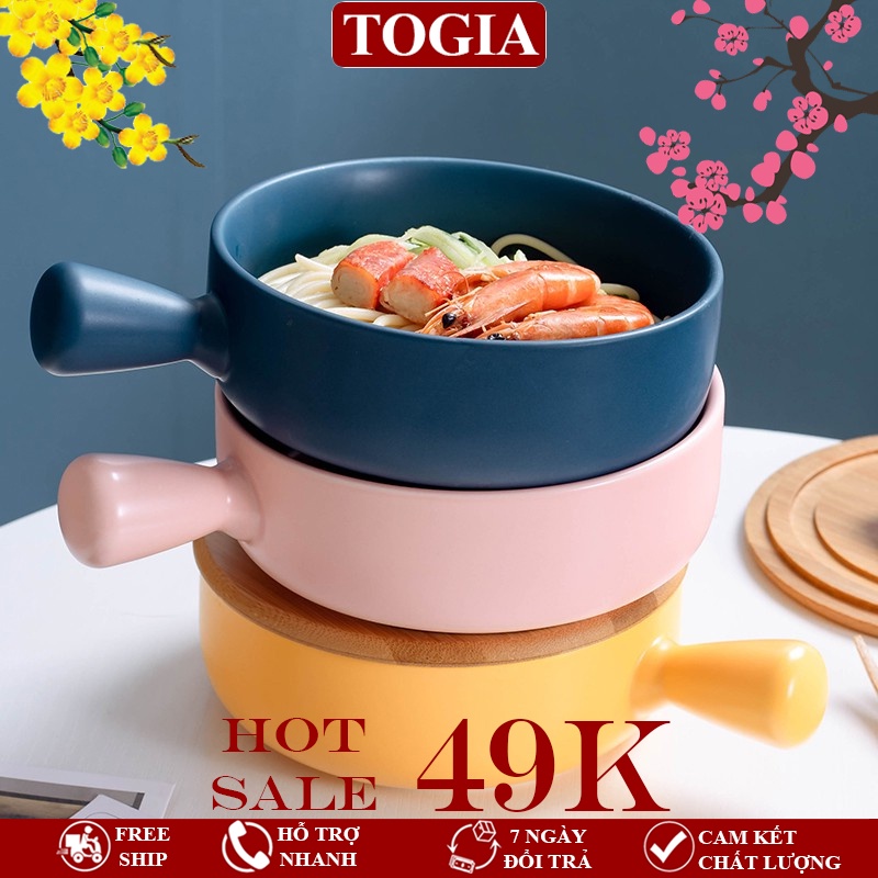 - Thố sứ có tay cầm thuận tiện cho việc bưng bê, di chuyển