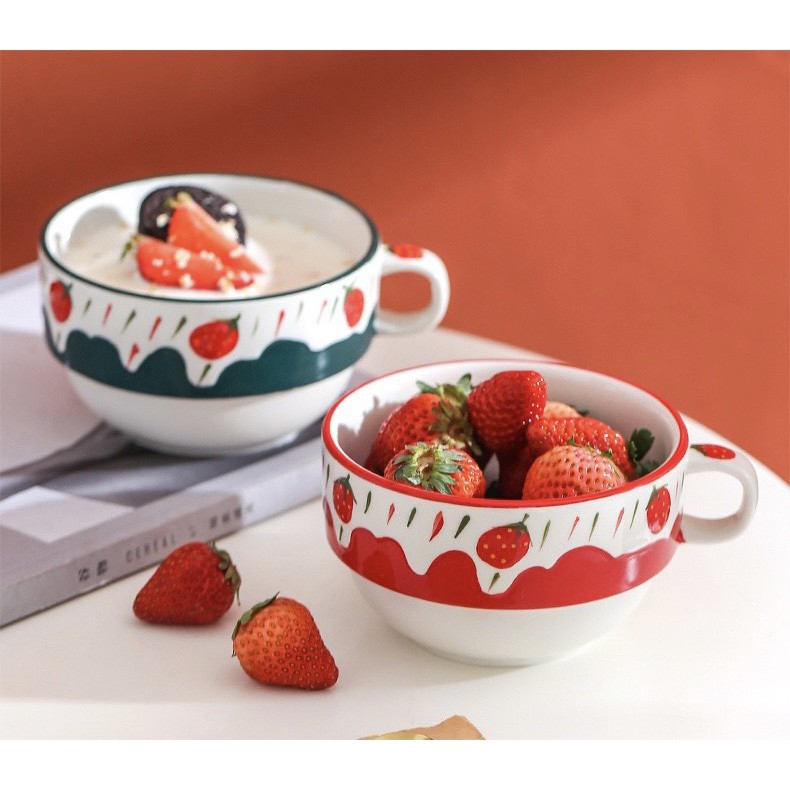 Nhà cửa & Đời sống > Bộ đồ bàn ăn > Tô || Bát sứ dâu tây hoạ tiết nổi 3D, bát ăn chè, salad kiểu Bắc ÂuCòn hàng