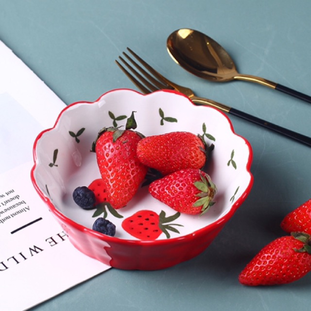 Nhà cửa & Đời sống > Bộ đồ bàn ăn > Tô || Bát sứ dâu Tây , tô sứ đựng salat hình dâu size 14,5 cm, Bát sứ vẽ hoaCòn hàng