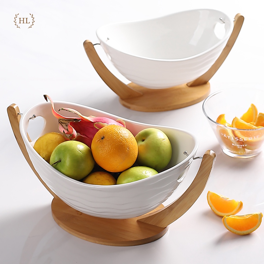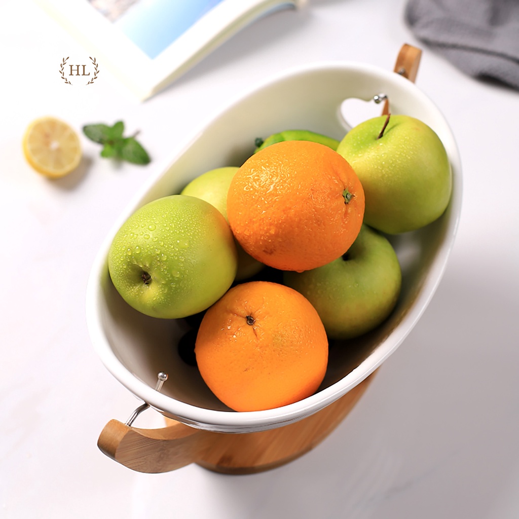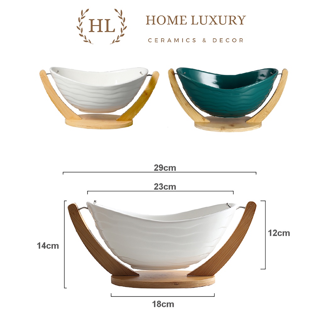 Giới thiệu Bát sứ đựng hoa quả có khung gỗ Decor 2022 | Làn Sứ Khung Gỗ Tre Xanh ngọc bích Vân Sóng 2022