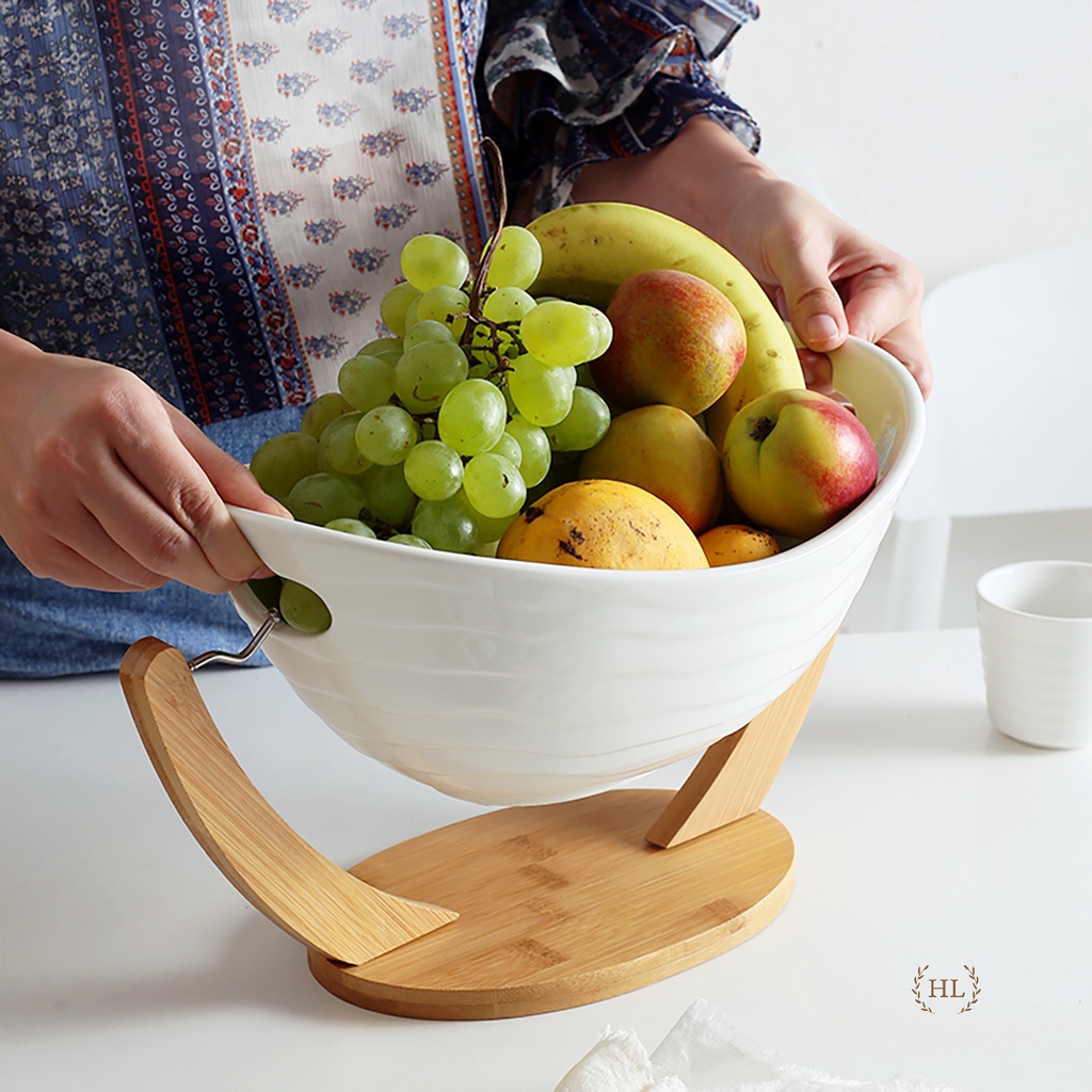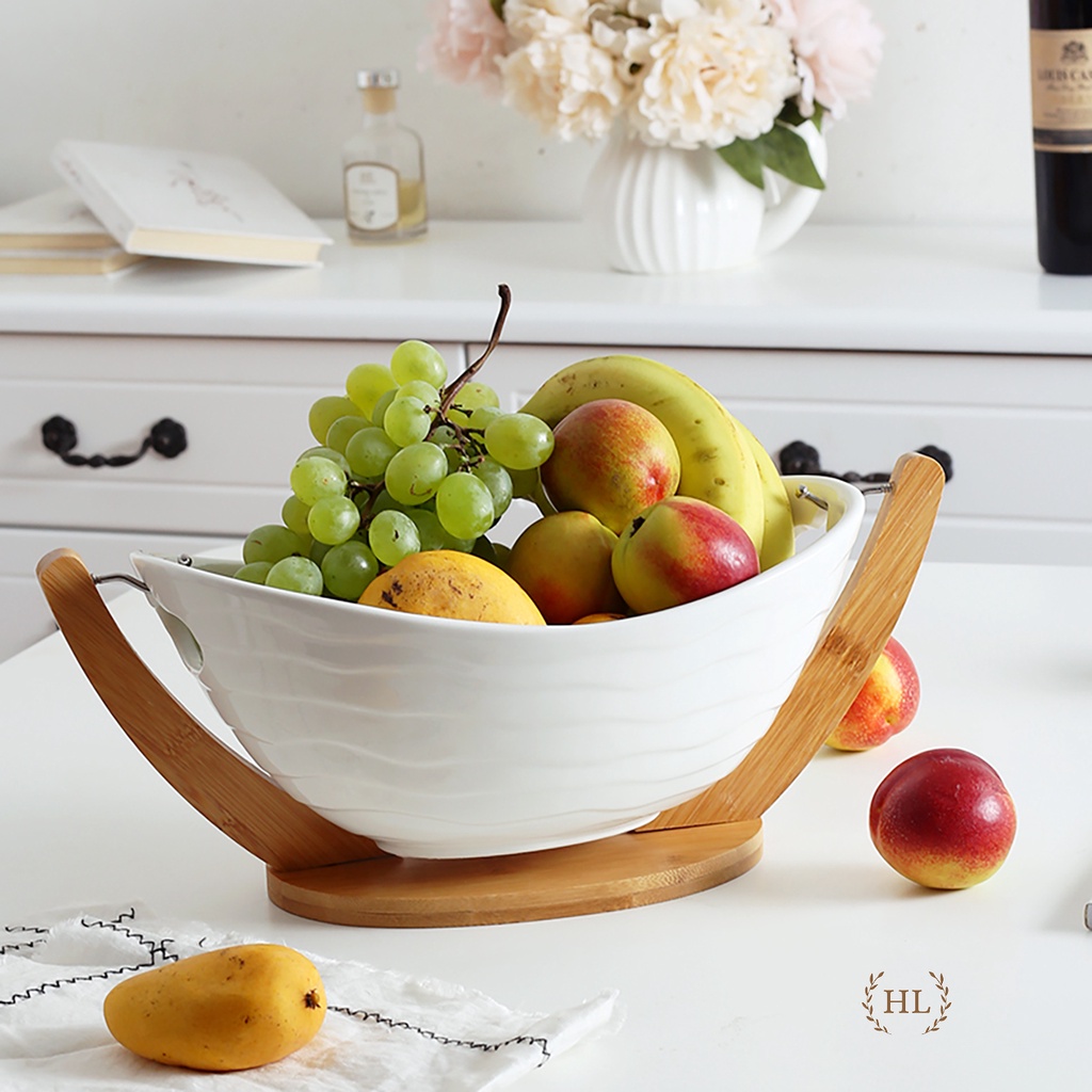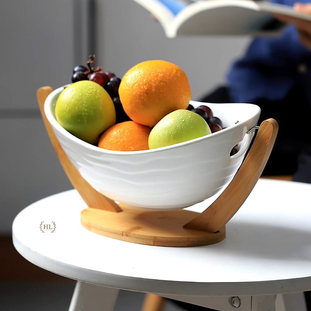 Bát sứ đựng hoa quả có khung gỗ Decor 2022 | Làn Sứ Khung Gỗ Tre Xanh ngọc bích Vân Sóng 2022Chuyên dụng đựng hoa quả trên bàn ăn - đảo bếp