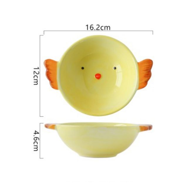 Bát ăn dặm bằng sứ hình gà vàng.Mẫu mã vui nhộn, phù hợp với trẻ nhỏ