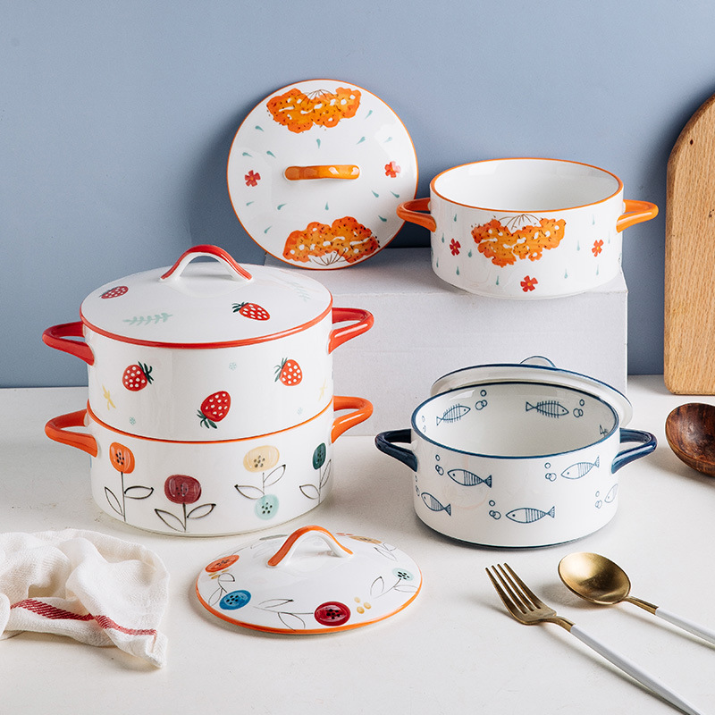 Giới thiệu Bát sứ hai quai, nồi sứ tiện lợi để nấu mì nhỏ gọn đẹp dễ dàng cọ rửa và tiện lợi