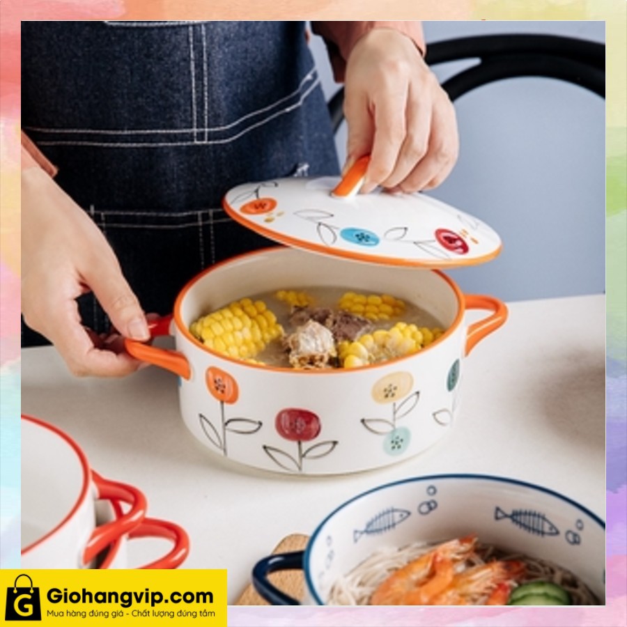 Bát sứ hai quai, nồi sứ tiện lợi để nấu mì nhỏ gọn đẹp dễ dàng cọ rửa và tiện lợi