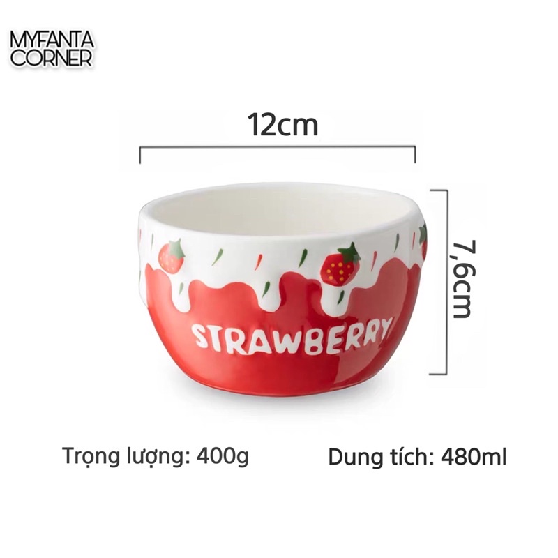 Nhà cửa & Đời sống > Bộ đồ bàn ăn > Tô || Bát sứ Hàn Quốc hoạ tiết dâu tây, bát ăn cơm tráng menCòn hàng