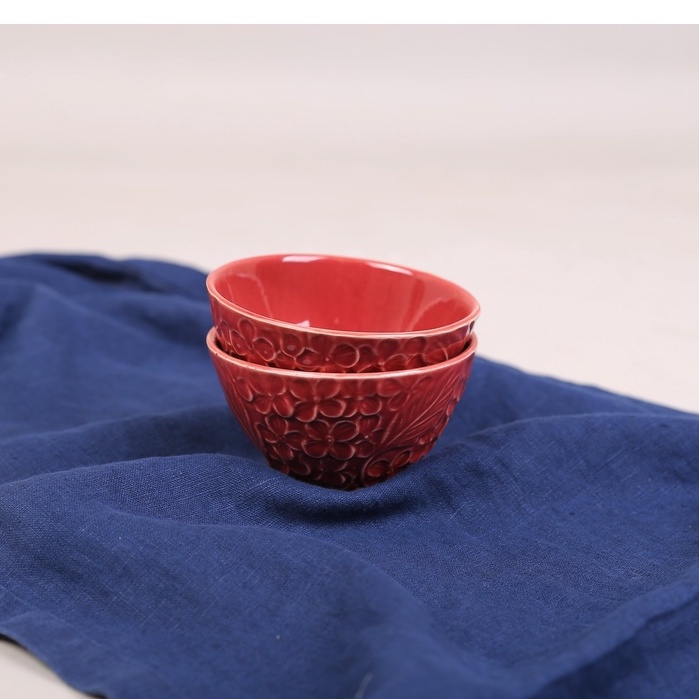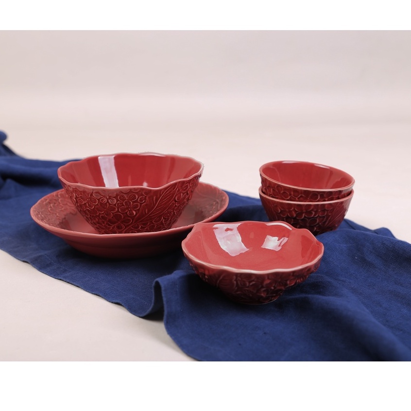 Nhà cửa & Đời sống > Bộ đồ bàn ăn > Dĩa || Bát sứ họa tiết Fleur màu đỏ Kiyohara Nhật Bản, Kích thước D12-14-17cmCòn hàng