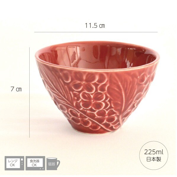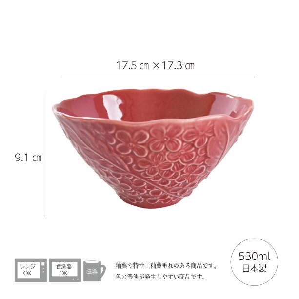 Giới thiệu Bát sứ họa tiết Fleur màu đỏ Kiyohara Nhật Bản, Kích thước D12-14-17cm