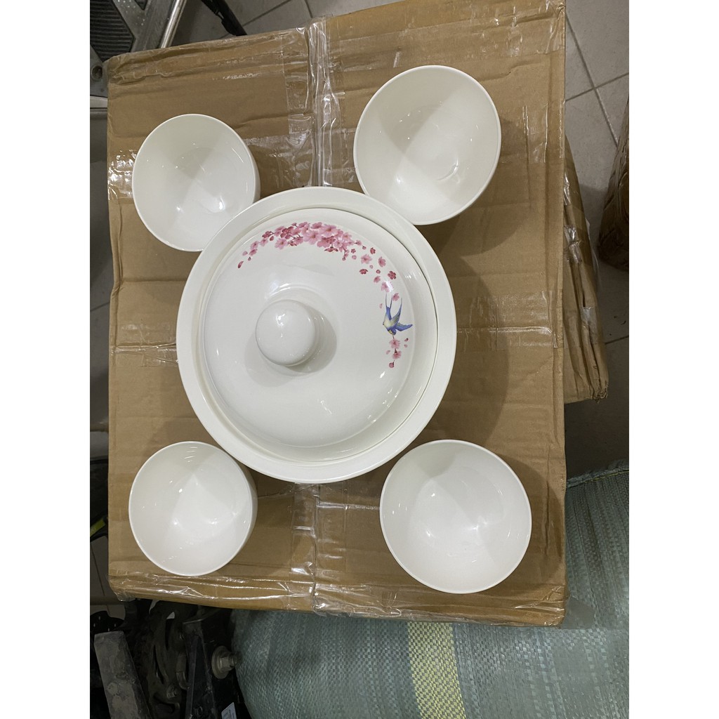 Bộ Bát Sứ Quà Tặng Từ OmoGồm 1 tô to có nắp và 4 bát (chén) như hình