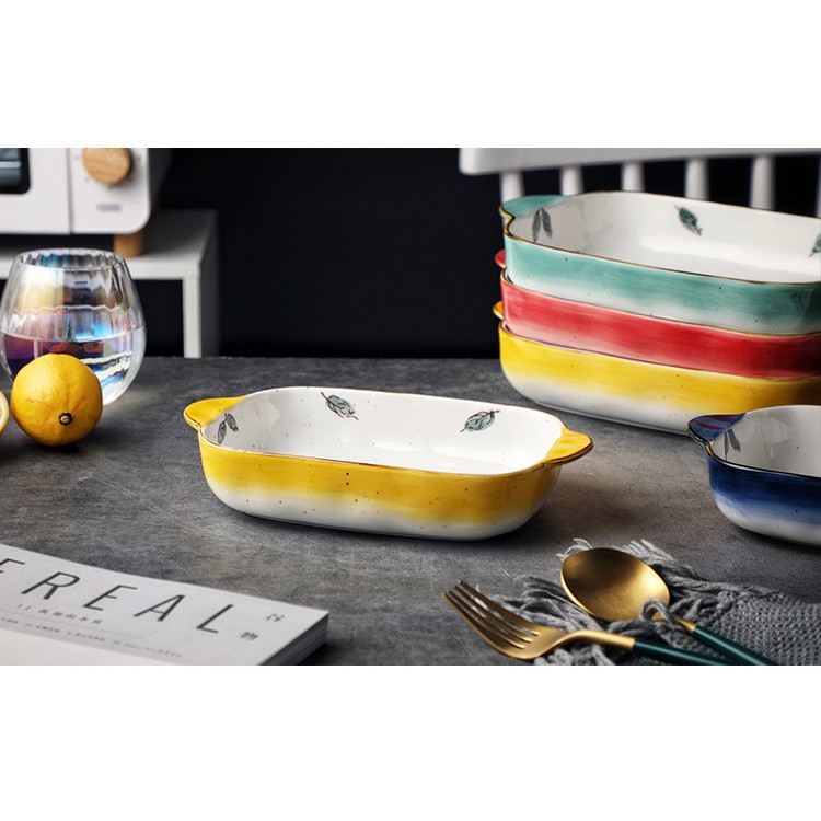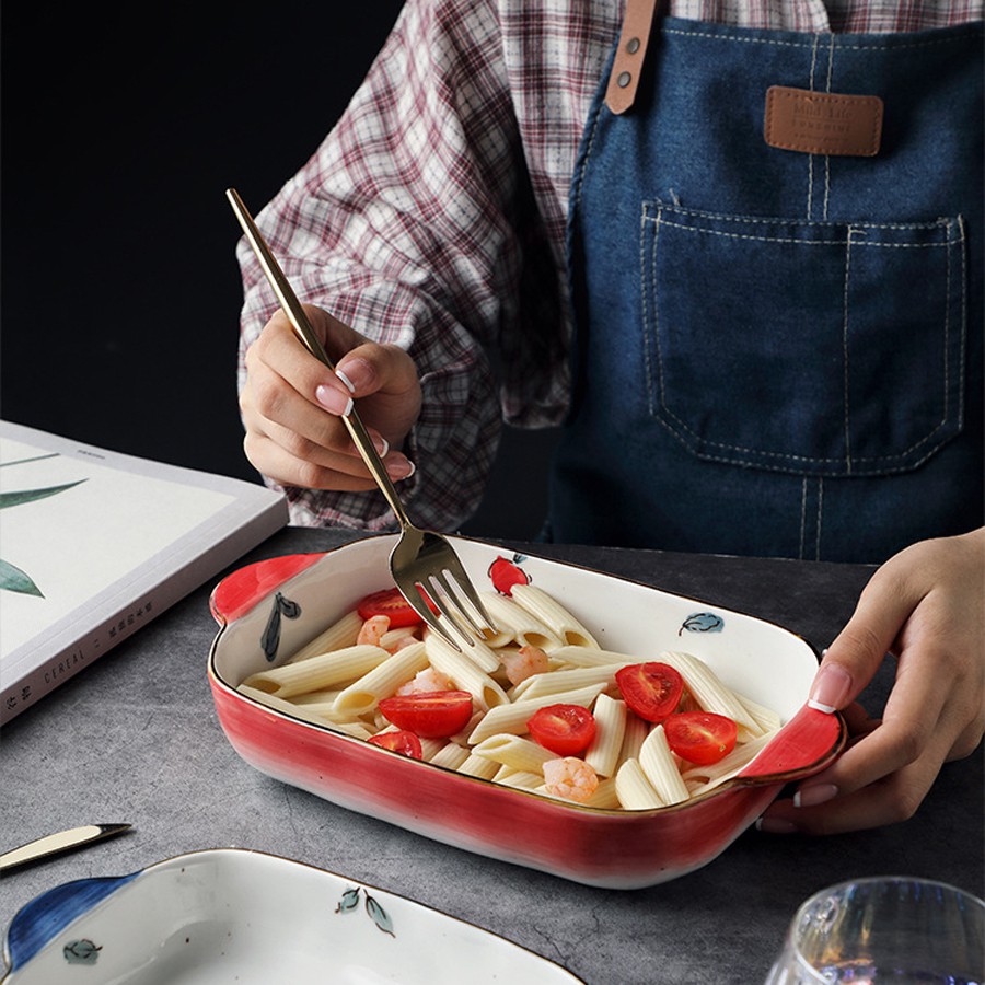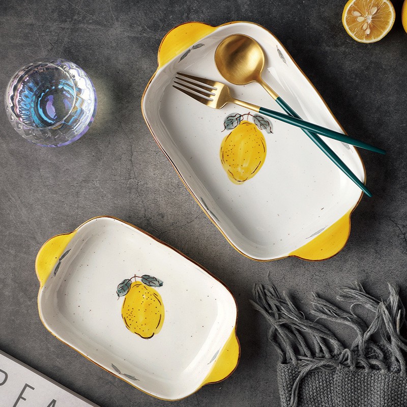 Nhà cửa & Đời sống > Bộ đồ bàn ăn > Dĩa || Bát sứ, thố nướng chữ nhật có quai cầm họa tiết hoa quả cực xinh- 2 dung tíchCòn hàng